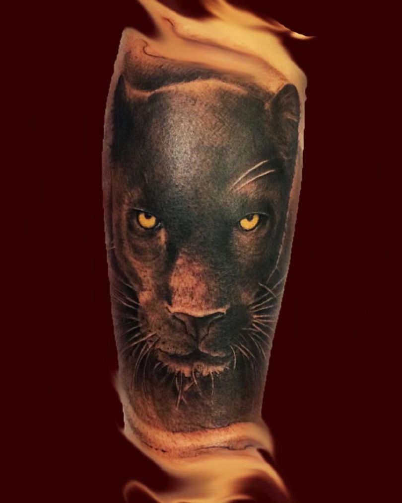 Ανάμεσα στα πολλά λιοντάρια, τζάγκουαρ και τίγρεις, η εικόνα ενός μαύρου πάνθηρα μπορεί να βρεθεί αρκετά τακτικά, καθώς και πούμας. Αυτή η άγρια γάτα προσελκύει την προσοχή και των δύο φύλων, όσων αναζητούν ένα ασυνήθιστο σχέδιο και μια εντυπωσιακή ιδέα για επένδυση στο σώμα.
