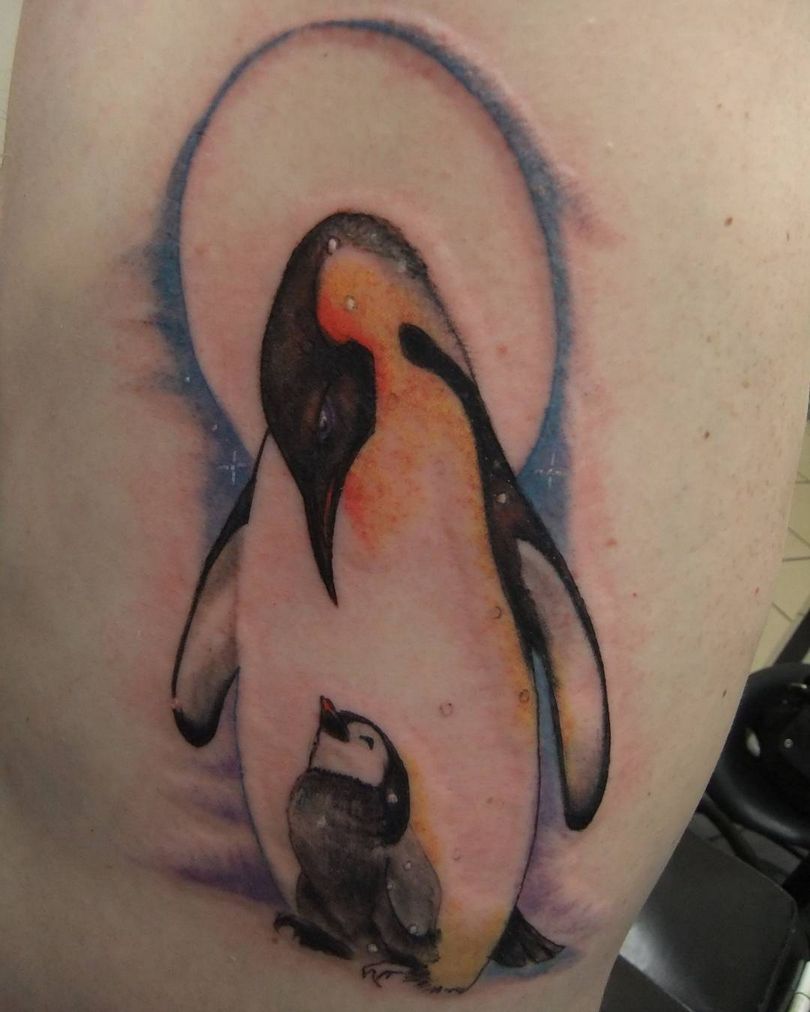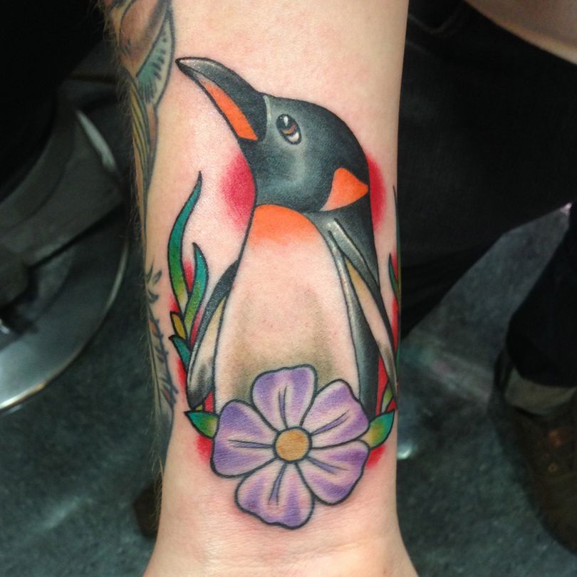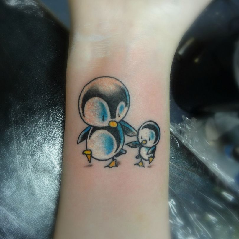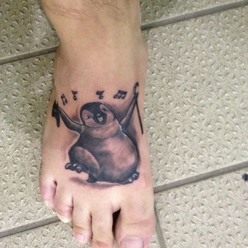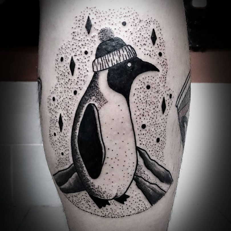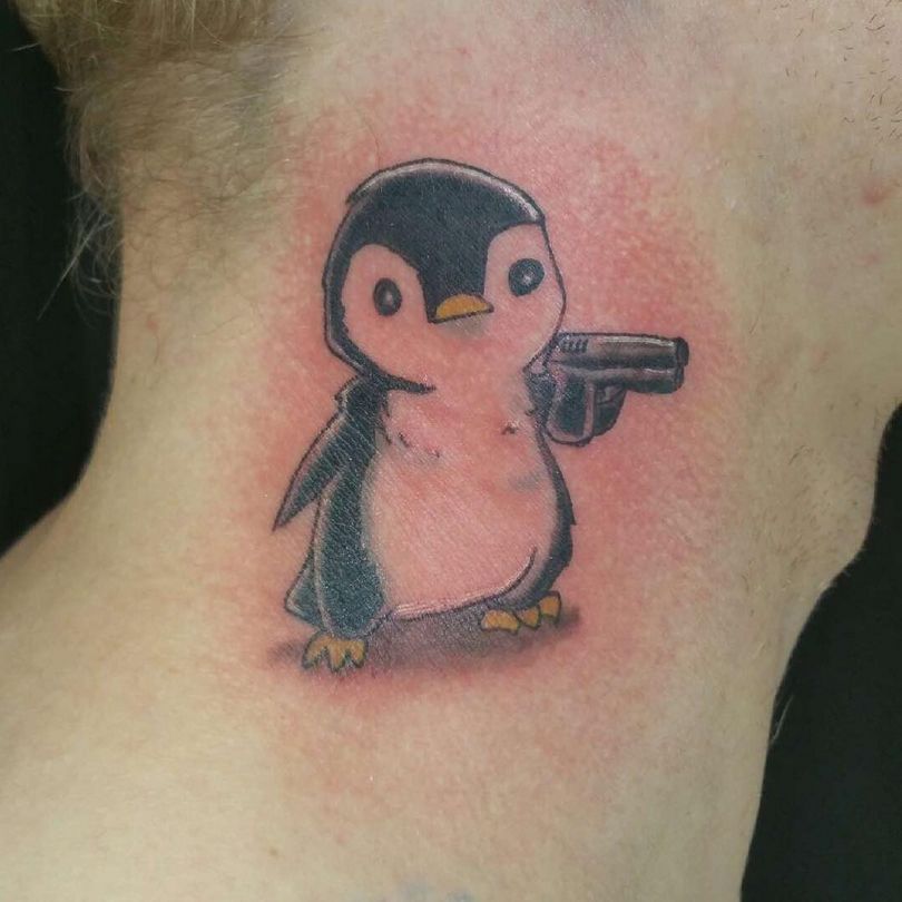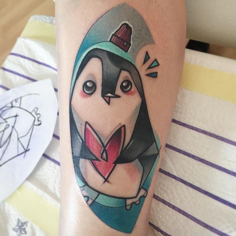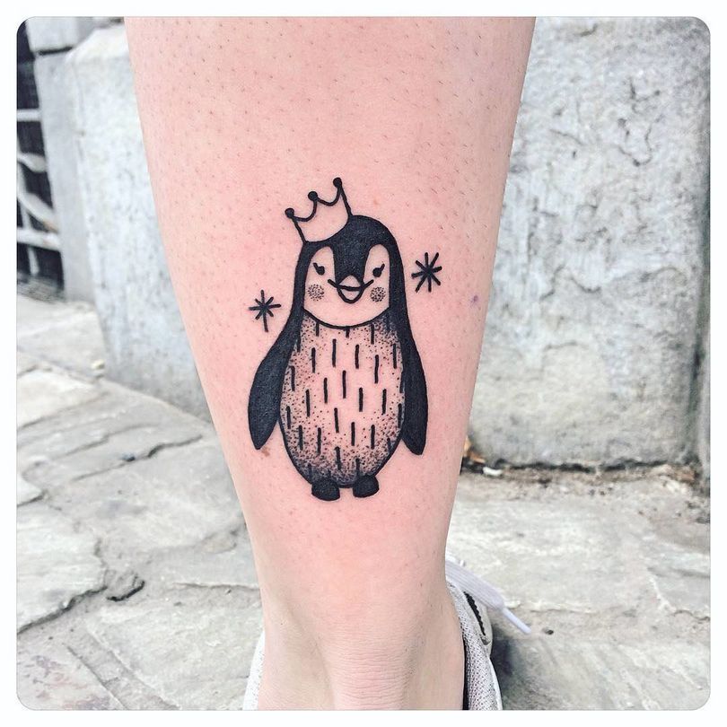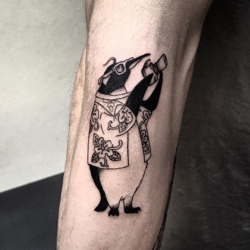 Ένα τατουάζ με έναν πιγκουίνο σηματοδοτεί τη φιλική διάθεση ενός ατόμου. Συχνά τοποθετείται στον καρπό, το αντιβράχιο ή την ωμοπλάτη. Αυτή η εικόνα διαπνέεται από θετικότητα και συχνά ταιριάζει σε πολύ δημιουργικές φύσεις.