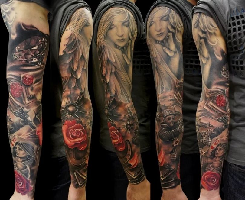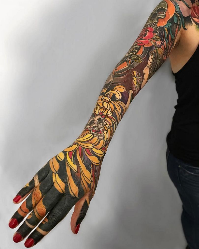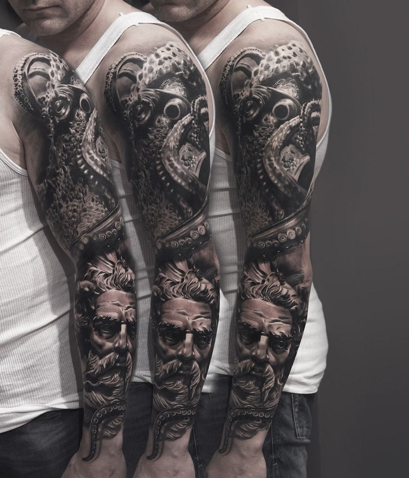 Μανίκια τατουάζ - στυλ, χρώματα (μαύρα, ασπρόμαυρα, χρωματιστά μανίκια), εντυπωσιακές φωτογραφίες