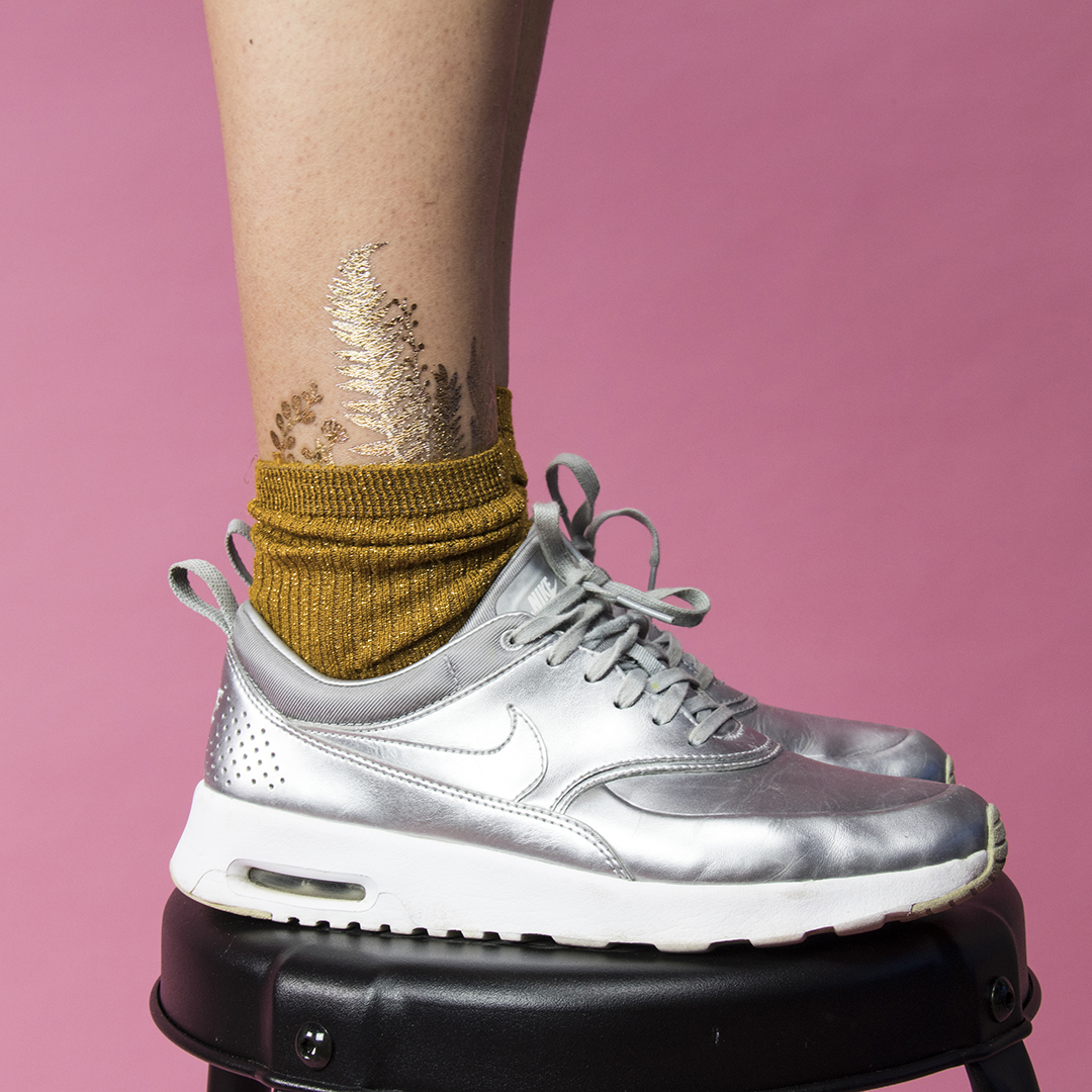 Subsequently, the use of gold tattooing became available to the general population. For a short time, tattoos made of simple gold or silver foil look good. The price of such products is quite democratic. Especially considering that you can glue the picture yourself.