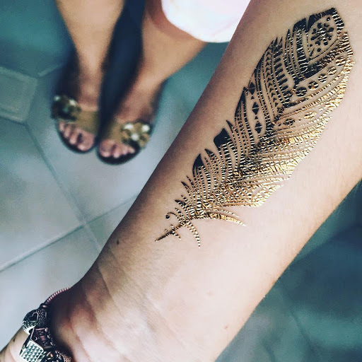 A gold tattoo is a substitute for real jewelry. The translations themselves are made of harmless materials. These pictures look luxurious on the body; they match the real jewelry perfectly. And finally, it's fashionable and affordable. If tattoos are fun, they're good for you.