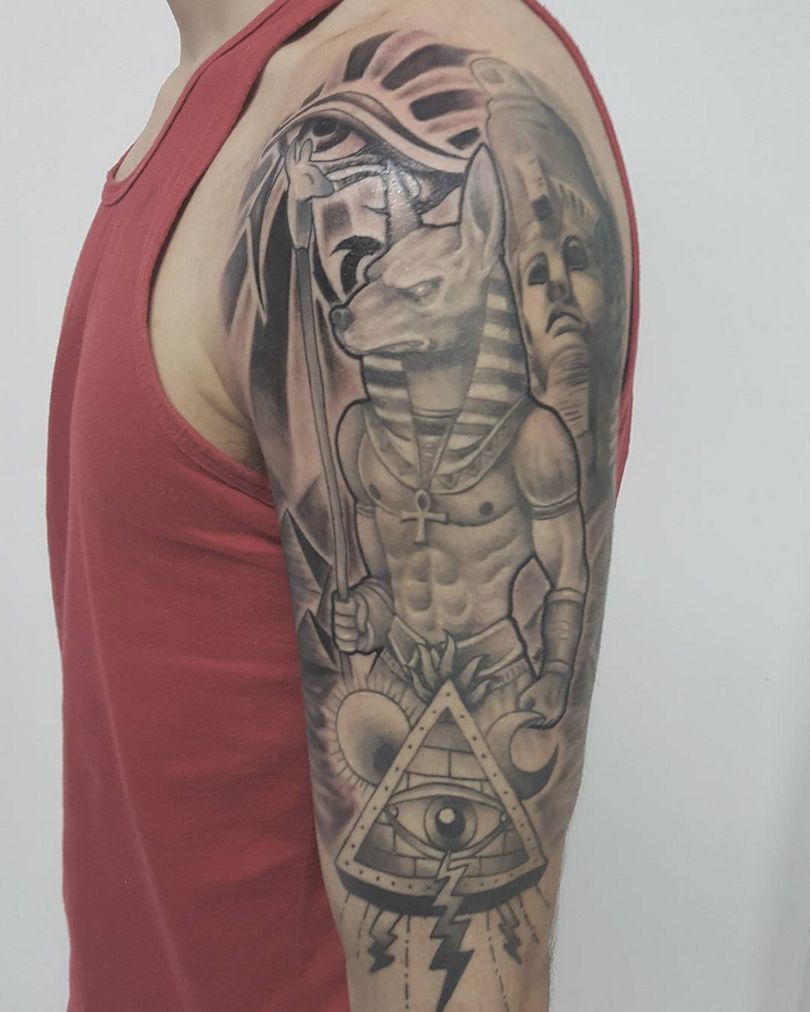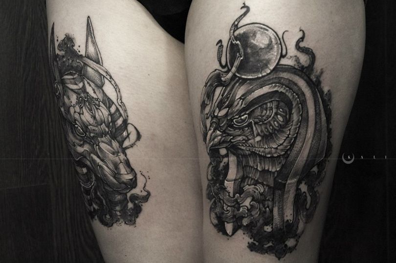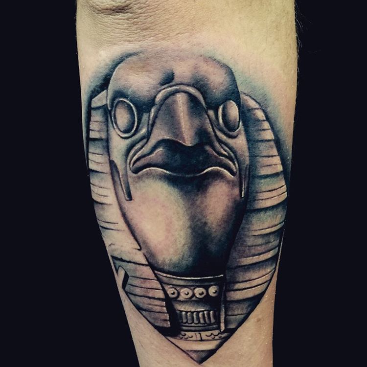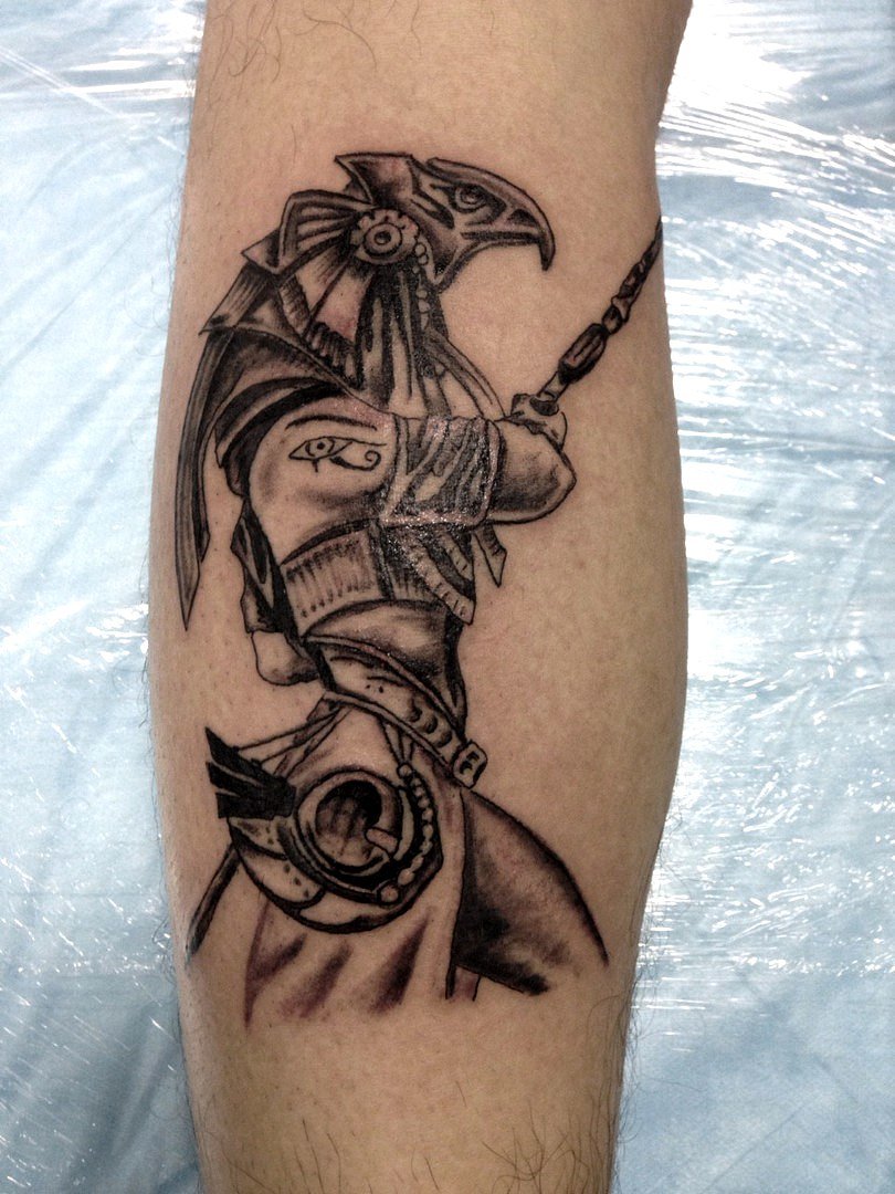 Para los devotos de la mitología egipcia, es una buena idea tatuarse al dios Ra por su patrocinio. Un tatuaje así iluminará el modo de vida de su propietario, le permitirá no prejuzgar los acontecimientos, distinguir las mentiras de la verdad y le protegerá de meterse en líos. Una imagen llevada actuará como talismán, ayudará a su portador a realizar sus ideas y le protegerá de influencias ajenas.