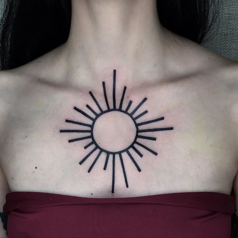 Los tatuajes de sol son populares tanto entre los hombres como entre las mujeres. Muchos los utilizan como talismán, ya que se cree que una imagen de este tipo atrae la buena suerte y dota al portador de energía positiva.