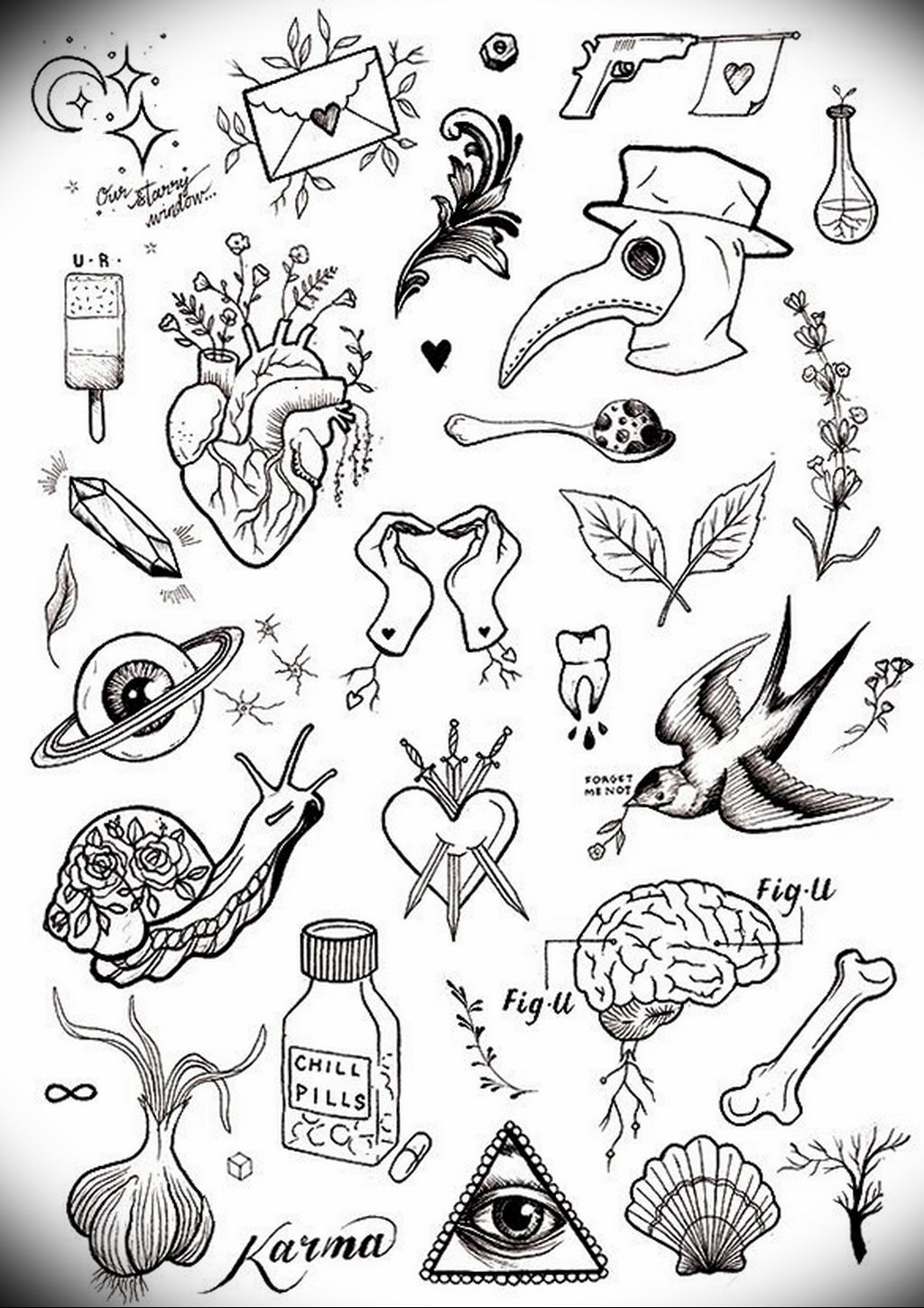 Créer une esquisse et appliquer un petit dessin n'est pas un processus moins responsable que de travailler sur une image plus grande. Surtout si les petits motifs de tatouage contiennent de fins détails et des lignes fines. Seul un artisan qualifié est capable d'appliquer une telle image. Certains styles et certaines idées peuvent être difficiles à reproduire dans une miniature, même pour un expert. Il vaut la peine de discuter de tous les détails avec l'artisan avant de peindre - lui seul peut vous dire s'il est possible de reproduire l'idée en version miniature.