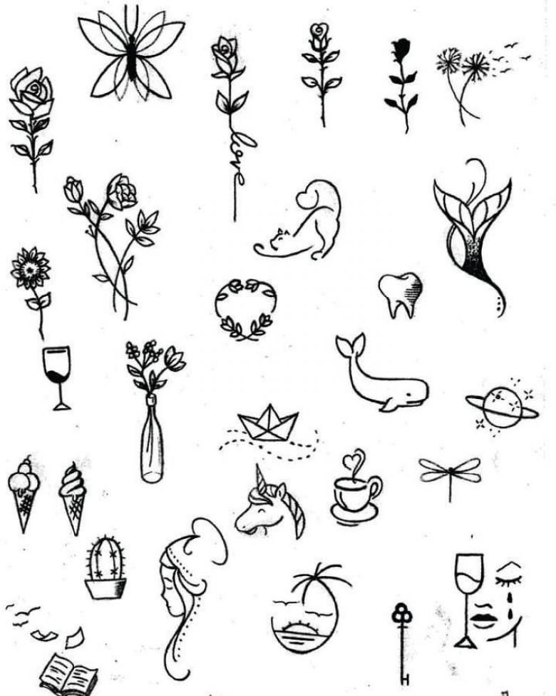 Chez les femmes, et en particulier chez les jeunes filles, les dessins de petits corps sont très populaires. Ils aident le beau sexe non seulement à faire preuve d'individualité, mais aussi à acquérir un sentiment de confiance en soi. Le plus souvent, à la base des croquis de petits tatouages sur le bras, le bas du dos ou la clavicule, on utilise des sujets végétaux, des images d'animaux ou d'oiseaux, ainsi que des symboles et des hiéroglyphes. Les tatouages minimalistes au look très moderne sont élégants et originaux.