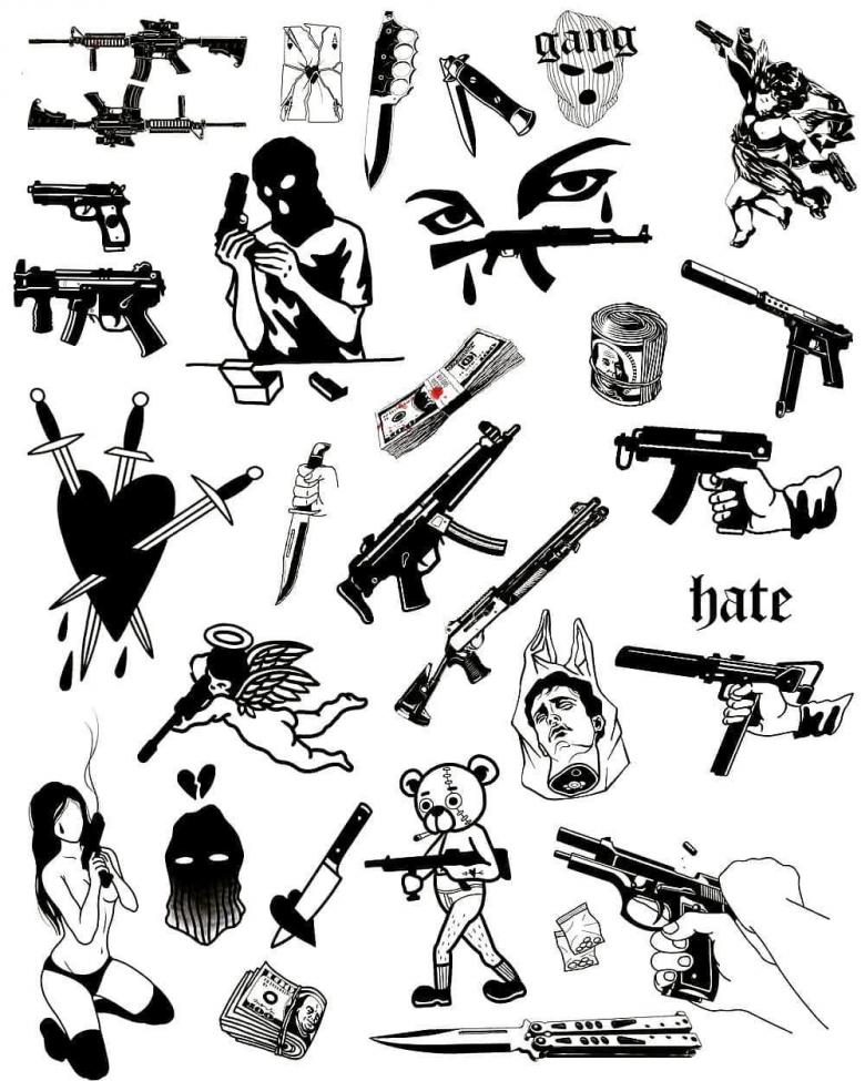 Un peu plus rarement, des dessins ornent le torse. Quel que soit l'emplacement du tatouage, que les motifs soient petits sur le bras ou sur le tibia, l'essentiel est leur signification. En général, les hommes optent pour des thèmes agressifs ou des signes ayant une signification plus profonde.