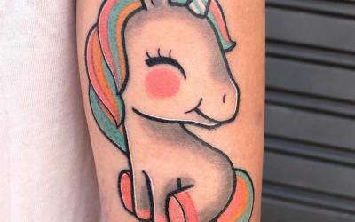Tatouage Licorne - signification pour les filles et les hommes, styles (noir et blanc, géométrique), dessins inspirants, photos