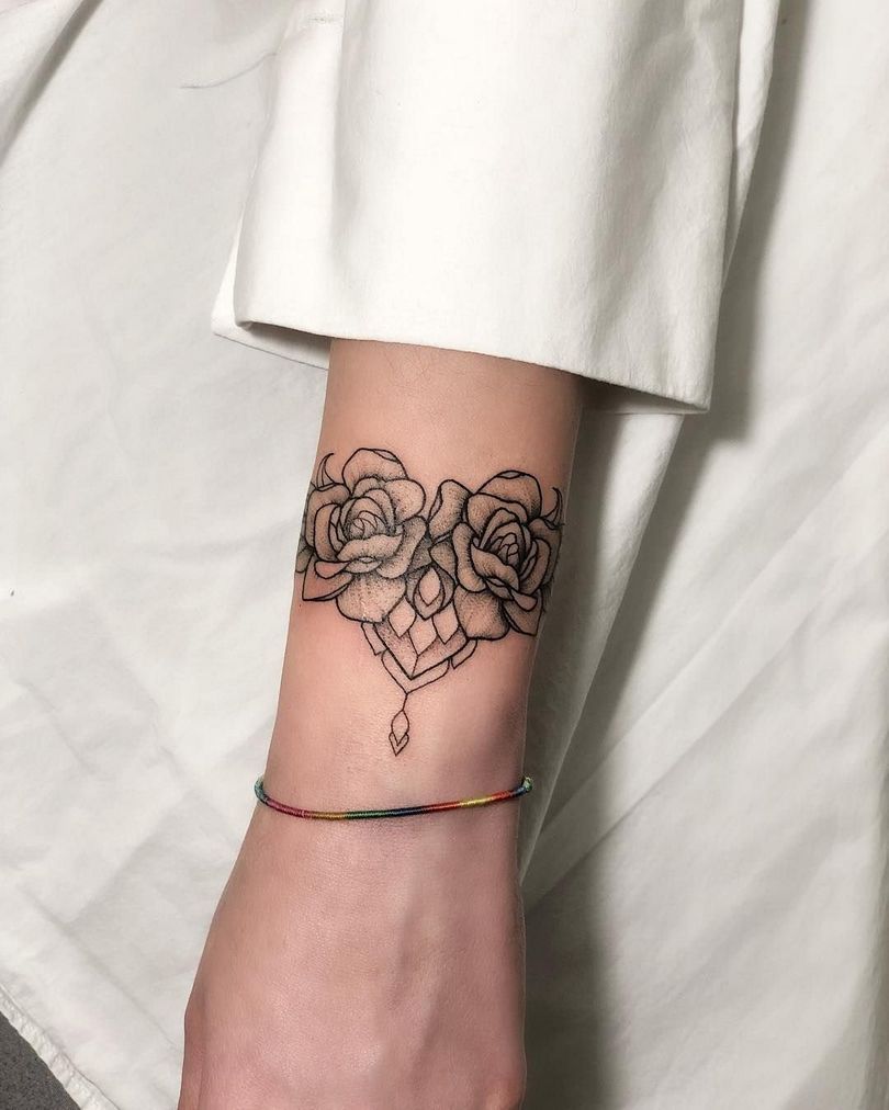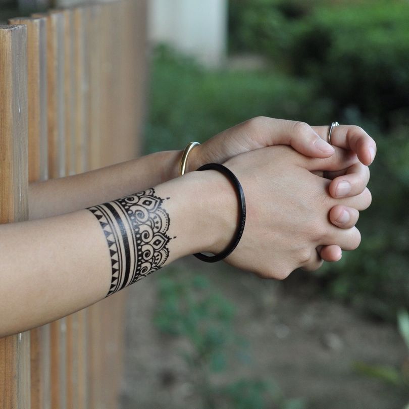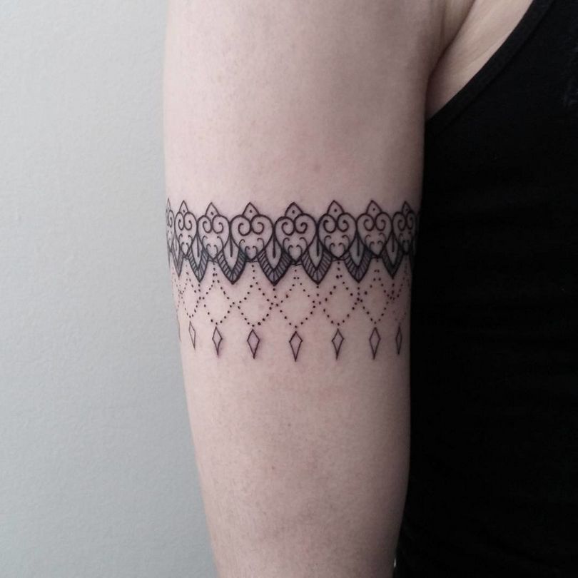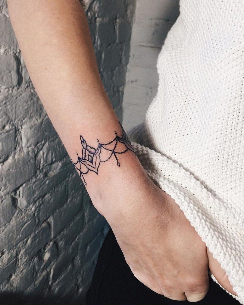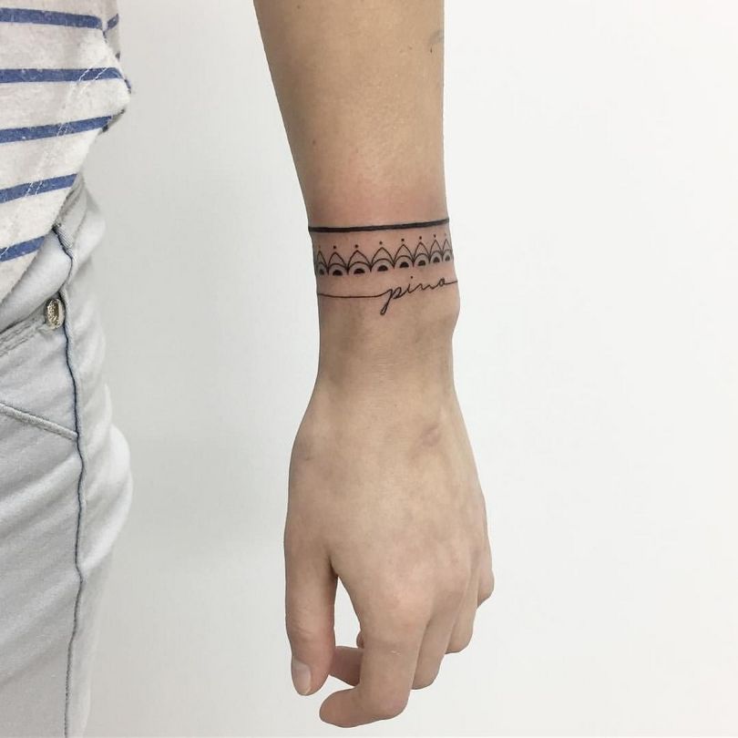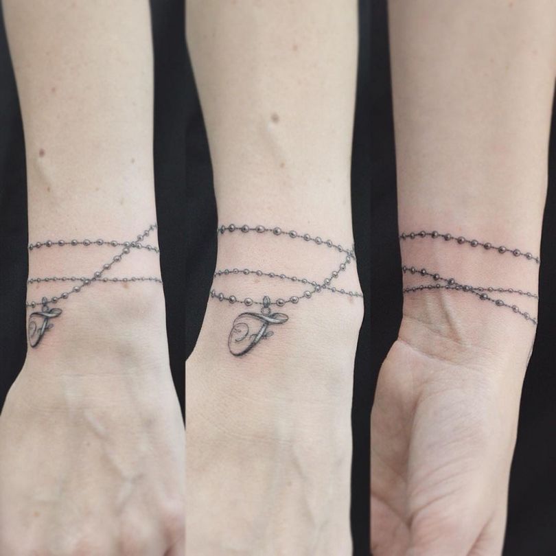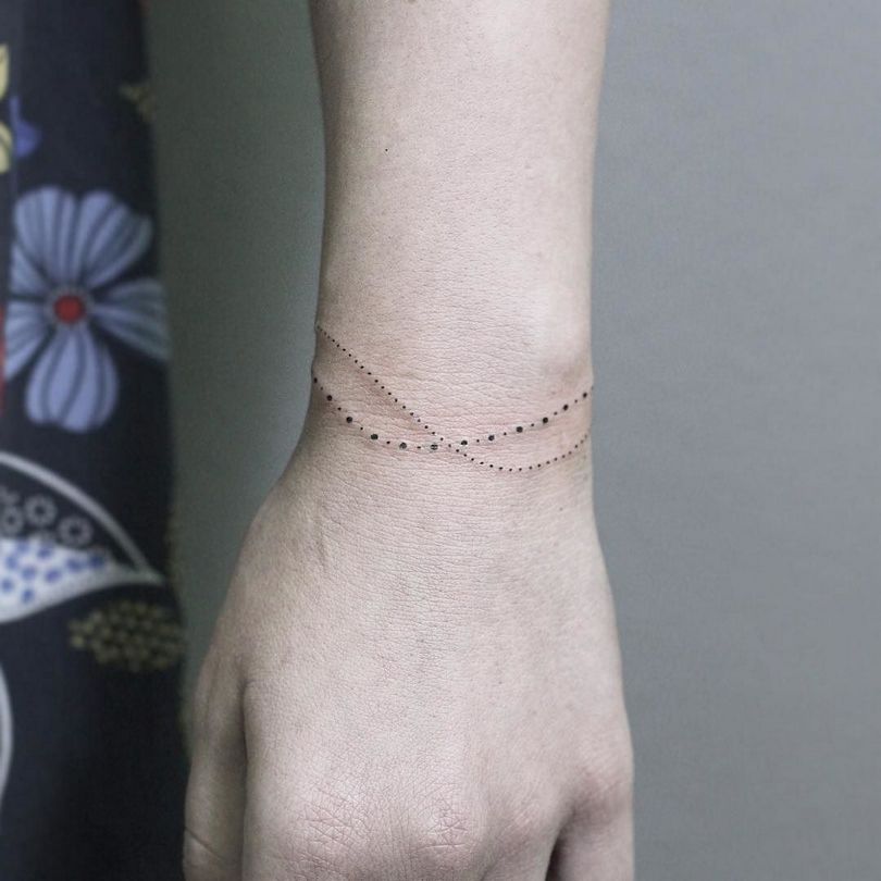 Tämäntyyppinen tatuointi sopii niille, jotka haluavat käyttää sitä talismaanina tai koristeena. Loppujen lopuksi pieni rannekoru voidaan helposti piilottaa vaatteiden alle. Tällaiset "pehmustetut" piirustukset ovat loistava ratkaisu niille, jotka joutuvat noudattamaan tiukkoja pukeutumissääntöjä työssä.