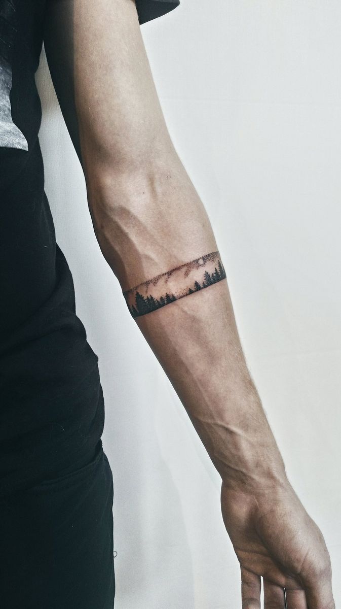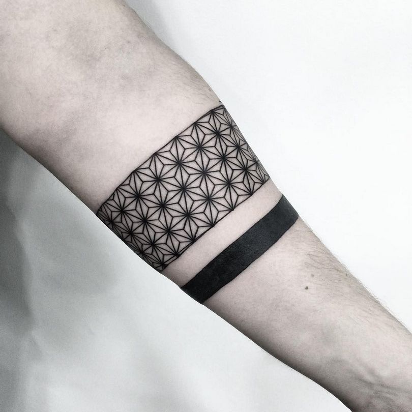 Miehillä rannekkeen optimaalinen paikka on olkapää, hauiksen alue. Koska siinä on melko suuri pinta-ala, joka mahdollistaa suurten luonnosten tekemisen.