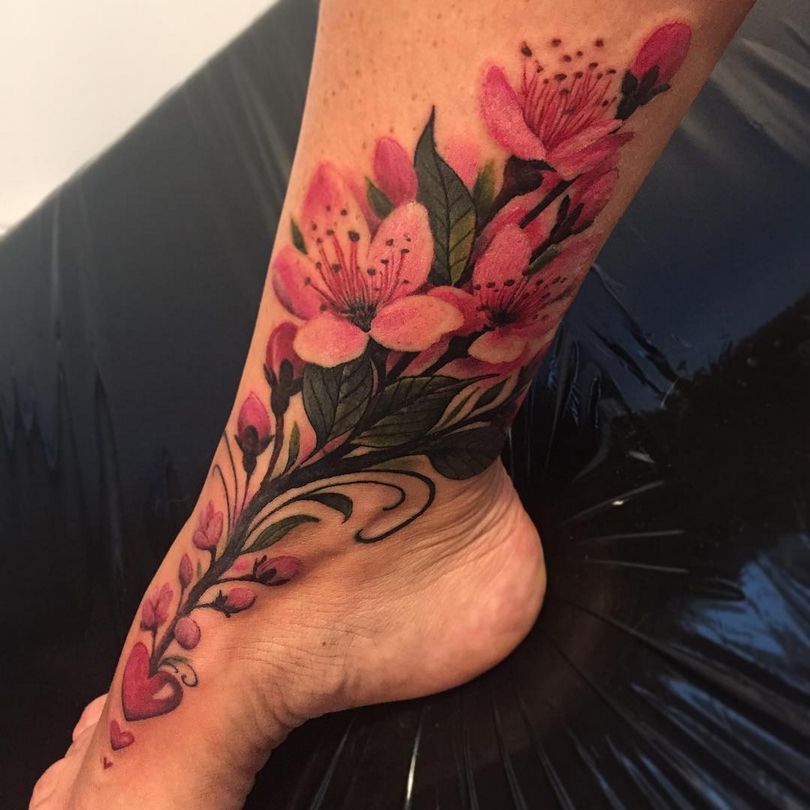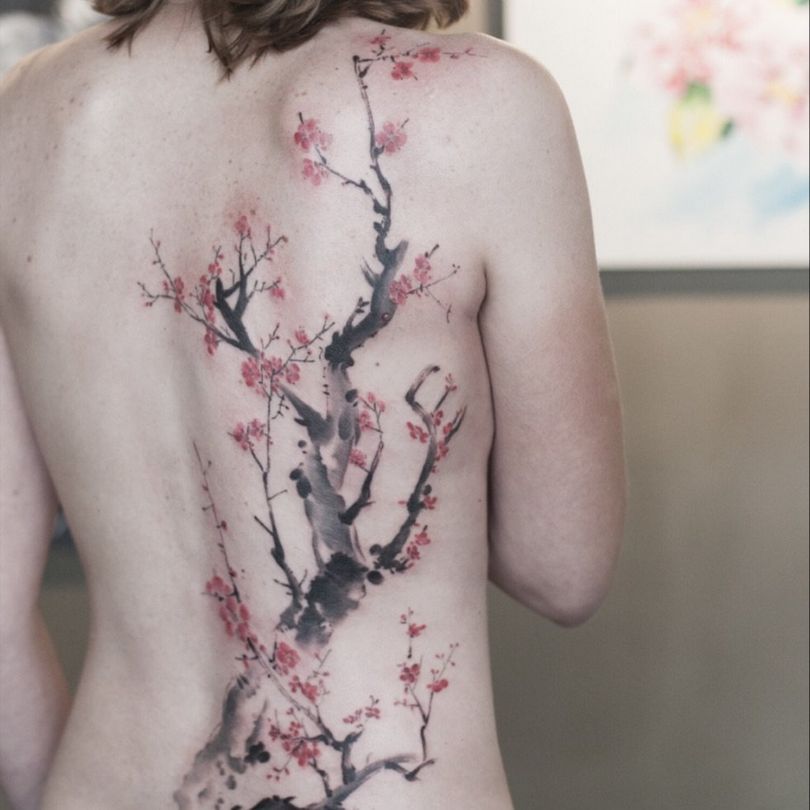 Kirsikkapuiden tatuointi - merkitykset tytöille ja miehille, suositut paikat (käsivarteen, solisluuhun, jalkaan), alkuperäiset luonnokset