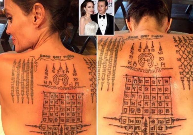 C'est l'un des tatouages les plus populaires d'Angelina Jolie sur son dos. Il a déjà 15 ans.