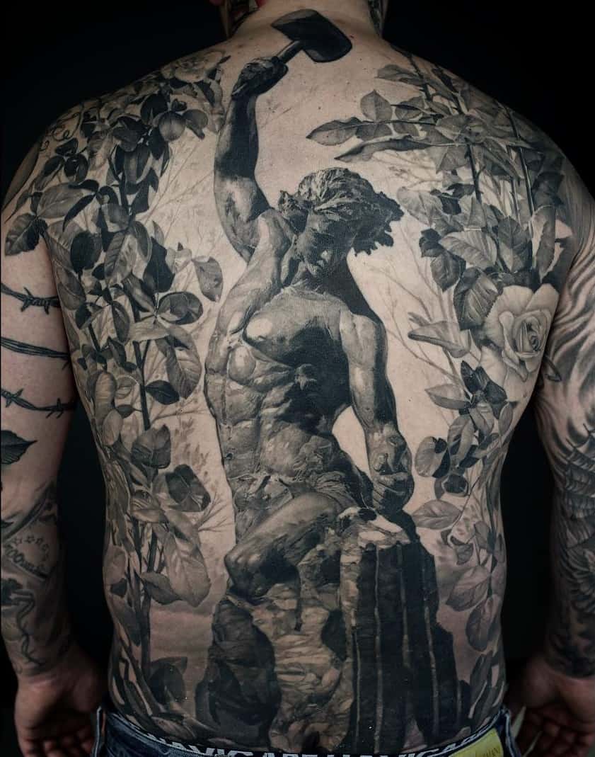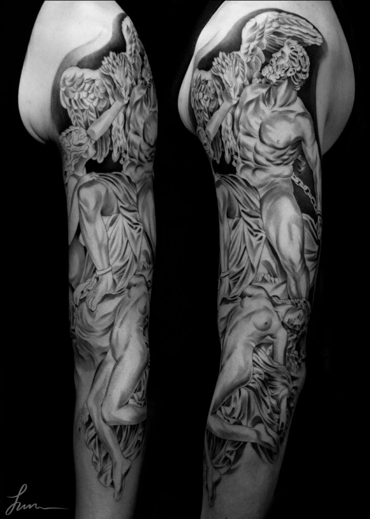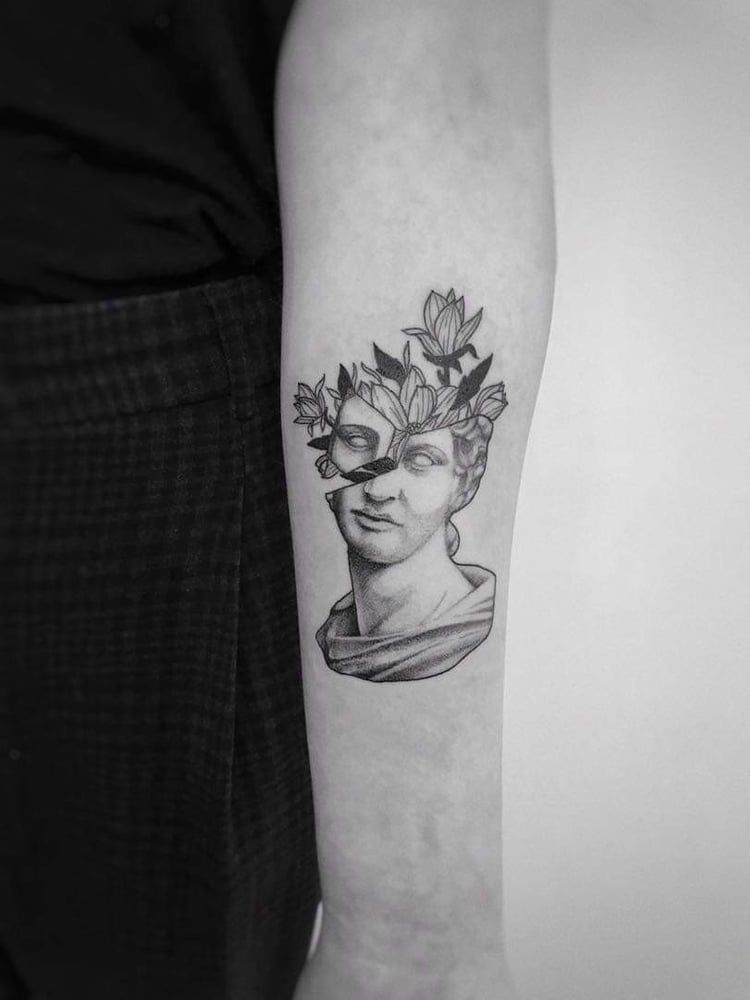 Les tatouages avec des statues sont préférés par les types créatifs. Le travail quotidien avec les pierres développe en eux un besoin de développement constant, une admiration pour l'antiquité et une retenue dans l'expression des émotions.