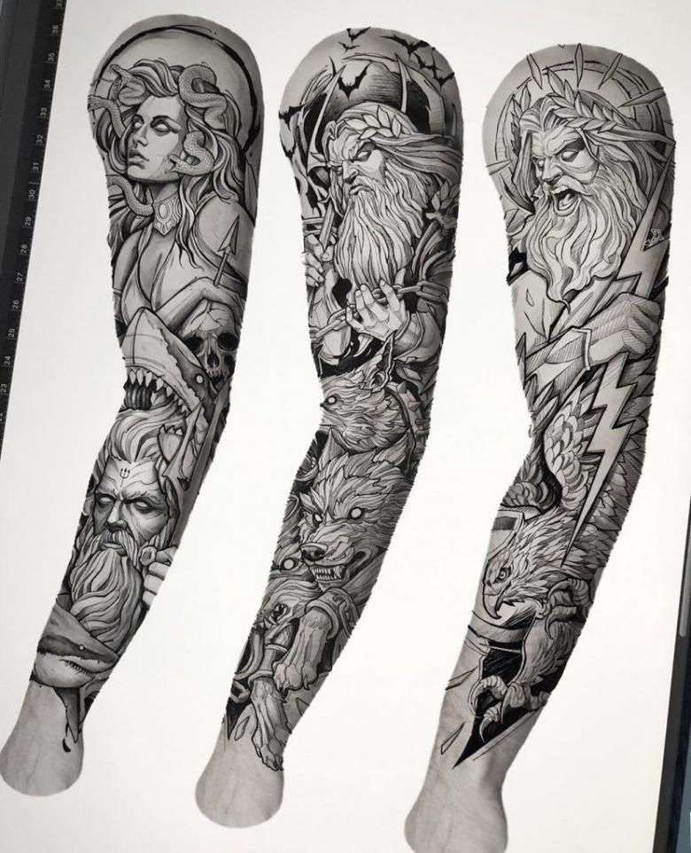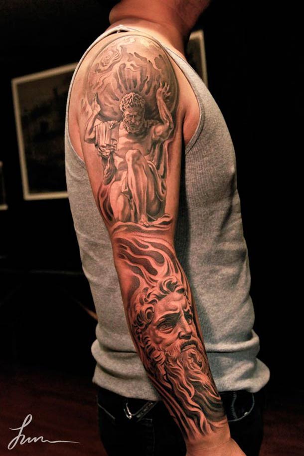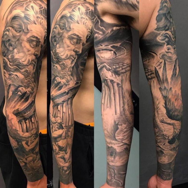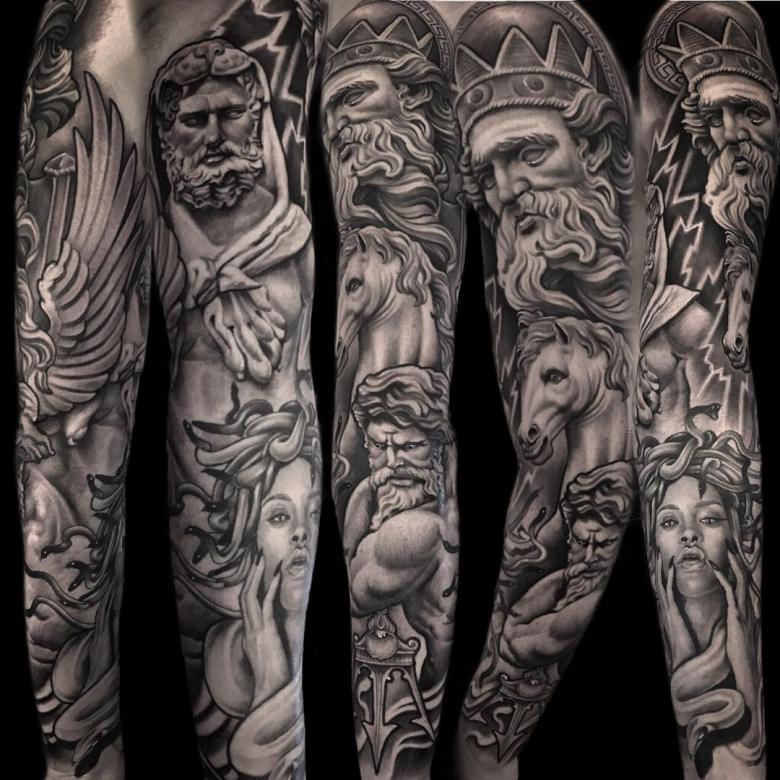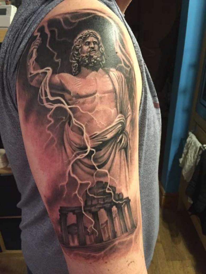 Les dieux grecs sont très demandés par les clients des salons de tatouage. Les jeunes des deux sexes optent souvent pour une représentation de Zeus le foudroyant. Chez un homme, le tatouage souligne les qualités d'un leader, d'un caractère fort. Zeus signifie la noblesse pour les femmes.