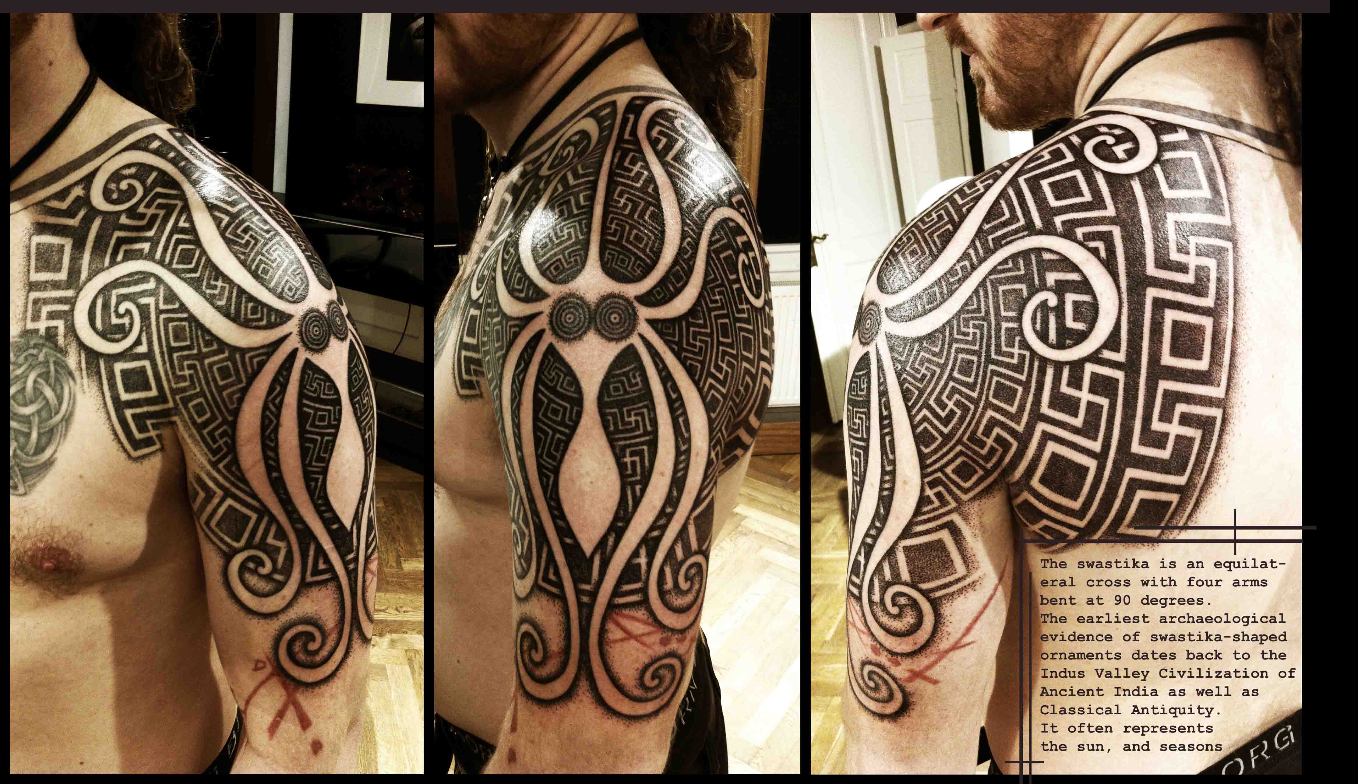 Les motifs et les ornements grecs occupent une place prépondérante dans les tatouages. Dans un entrelacement de symboles anciens, ils ont un aspect spectaculaire et organique. Cette symbiose a un côté pratique : un tatouage bien choisi dans le style grec peut cacher les défauts du corps et mettre en valeur les avantages.