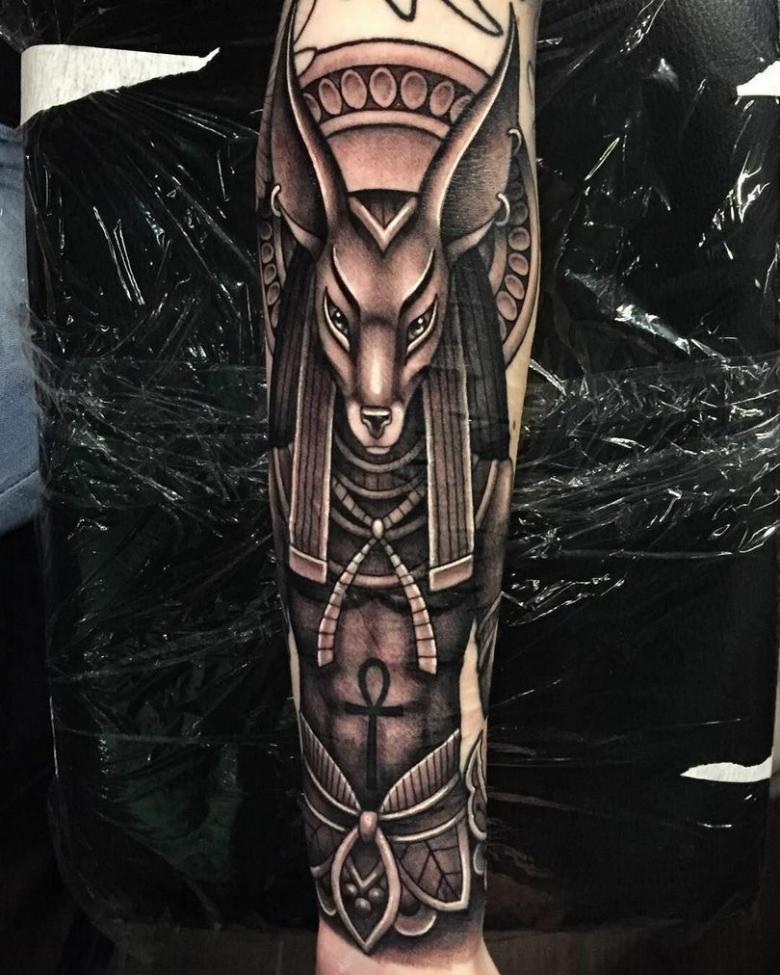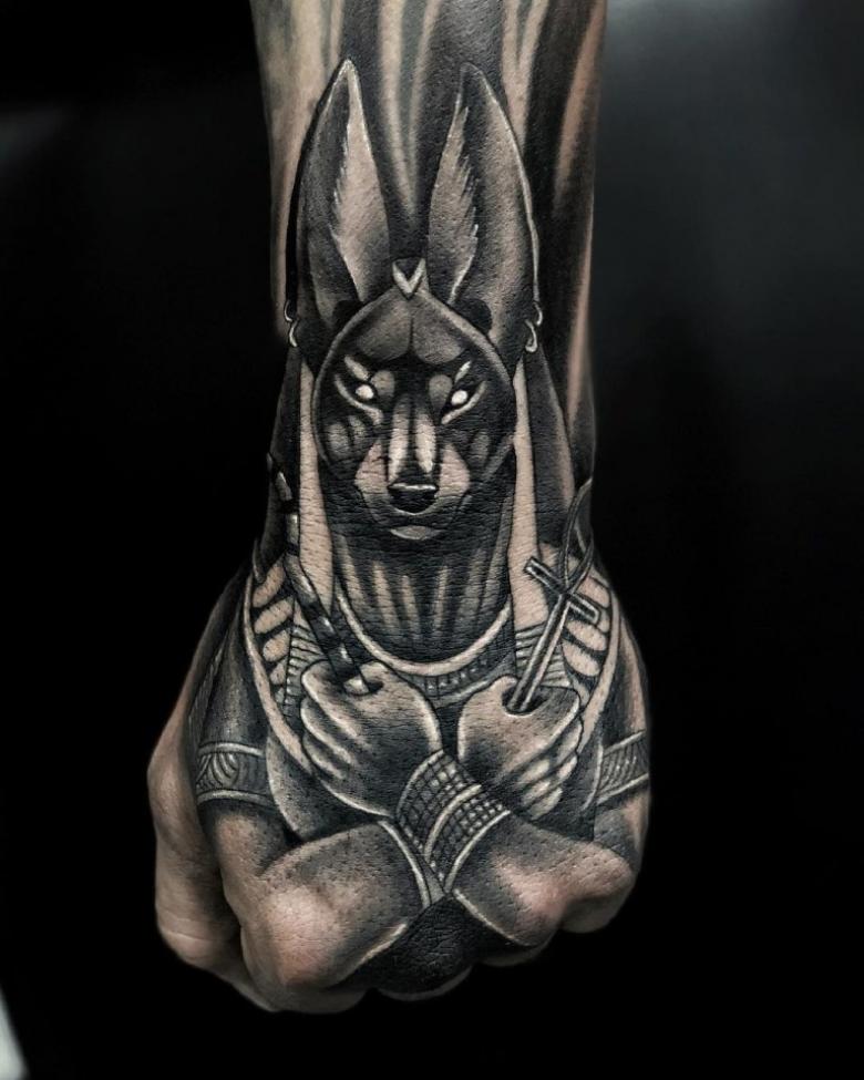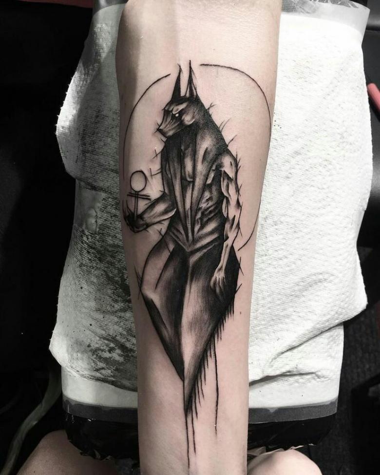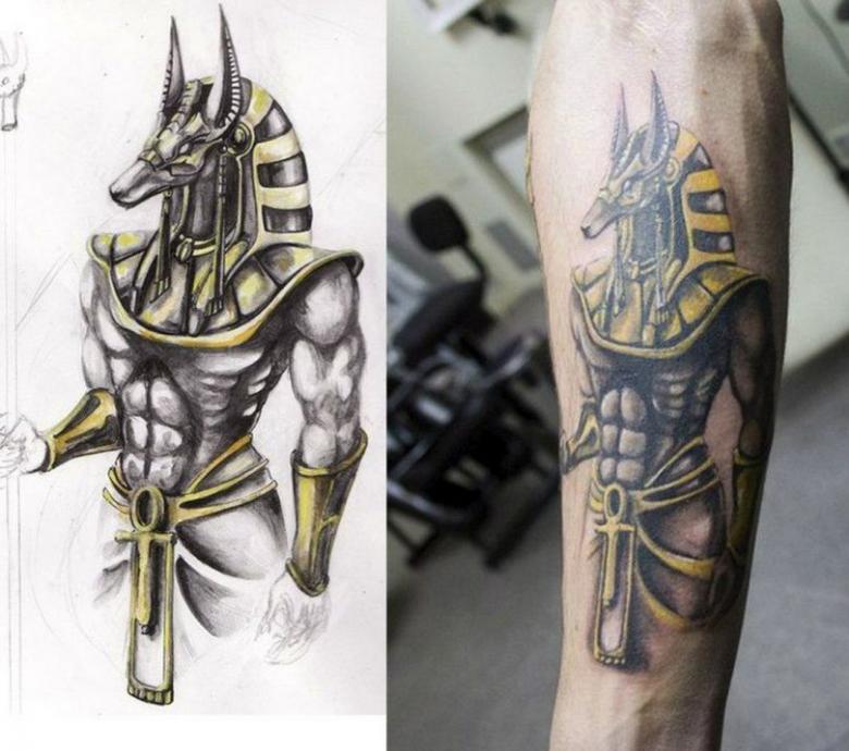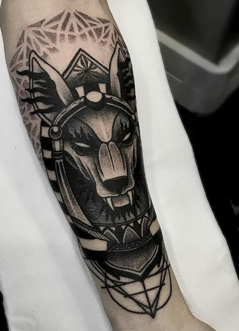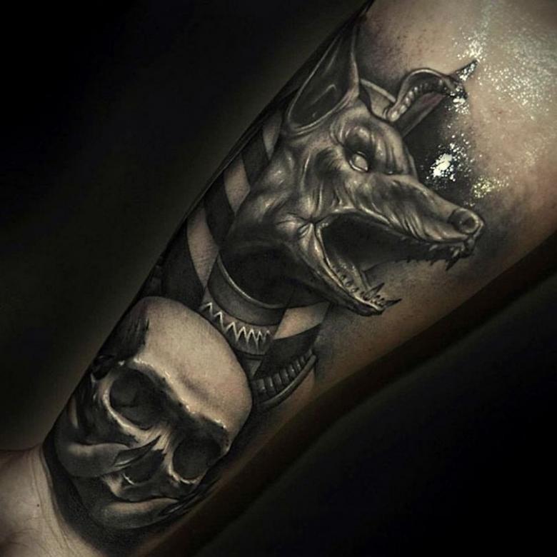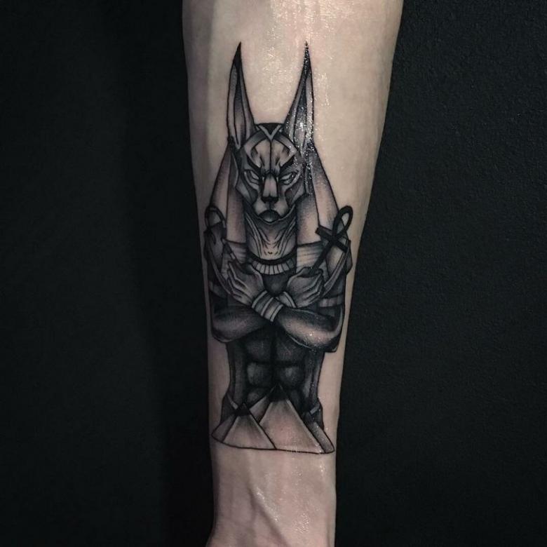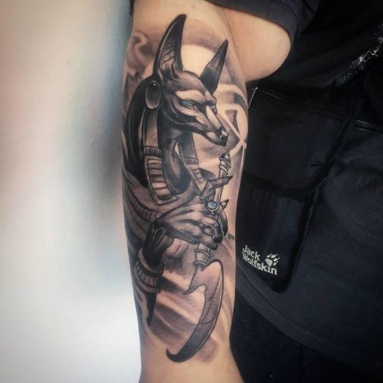 Anubis tetoválás - jelentés, elhelyezkedés (kéz, kar, alkar, kar, kar, láb), érdekes minták és fotók