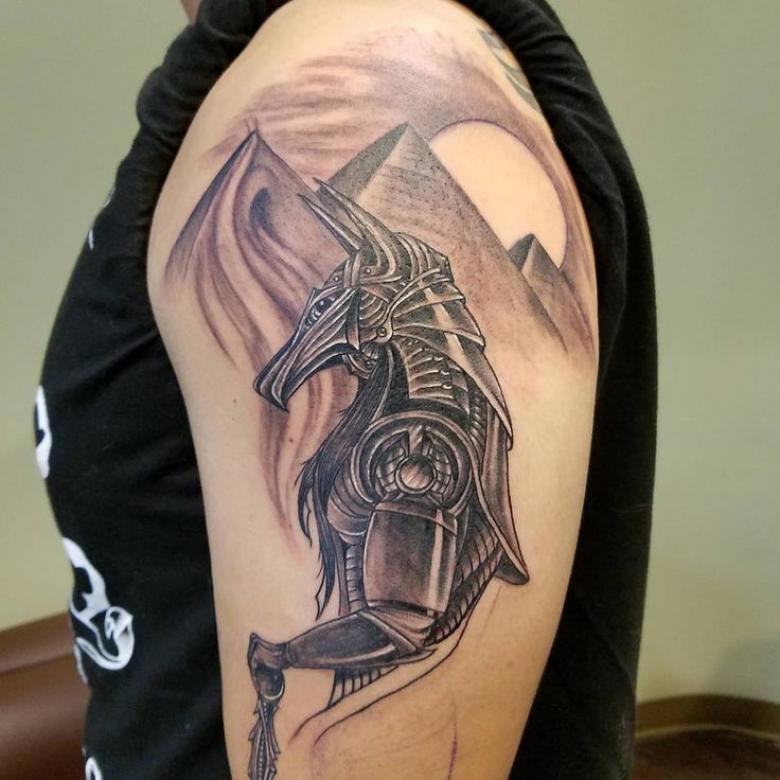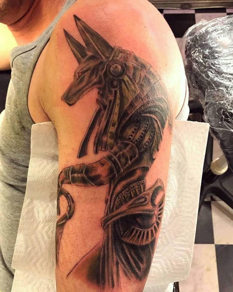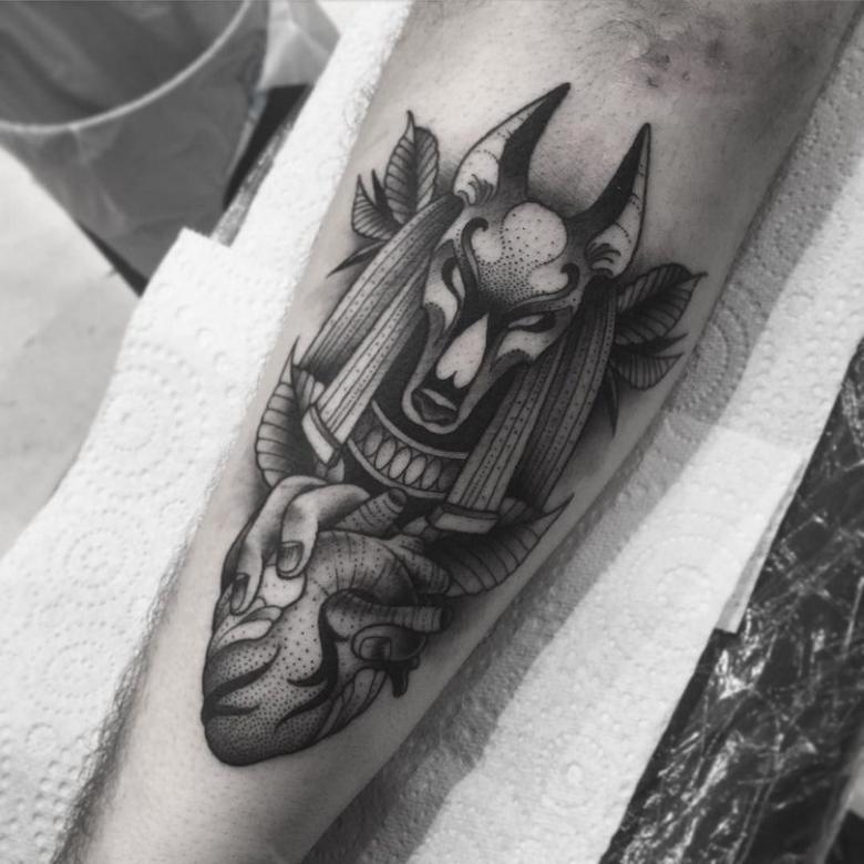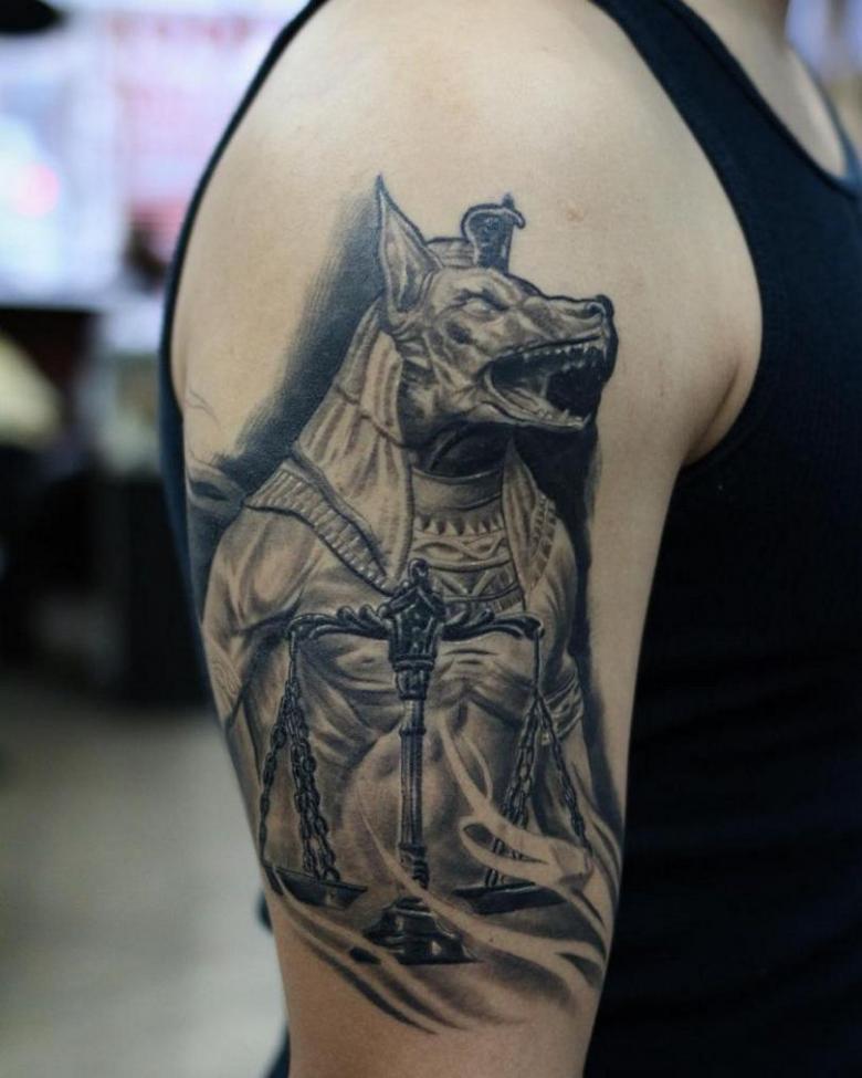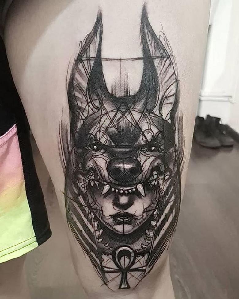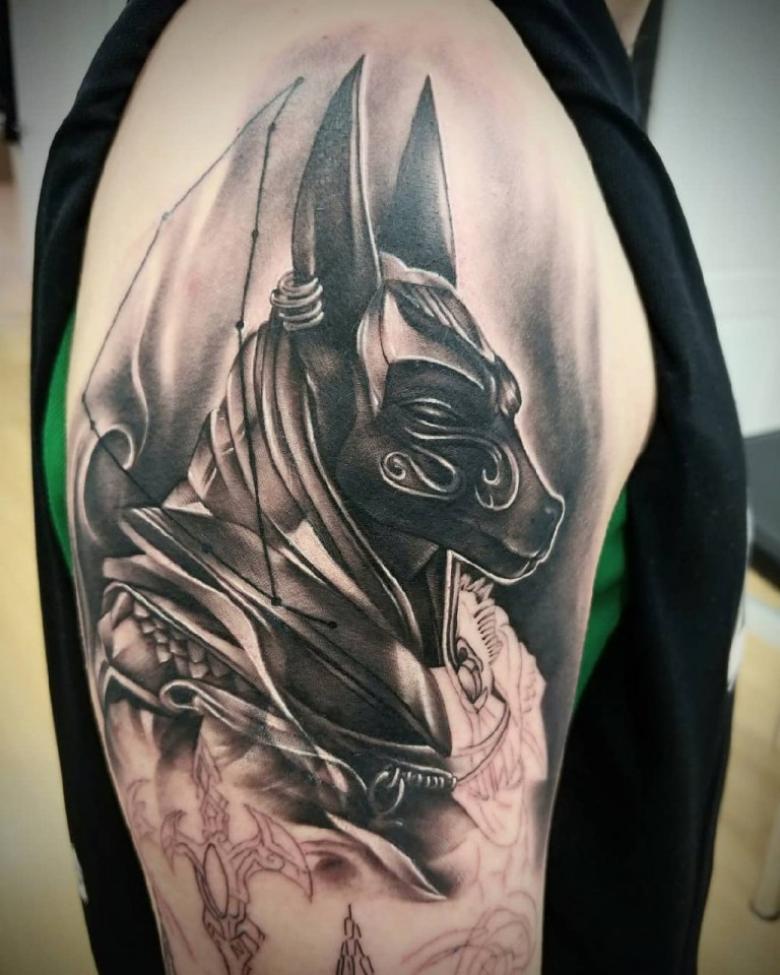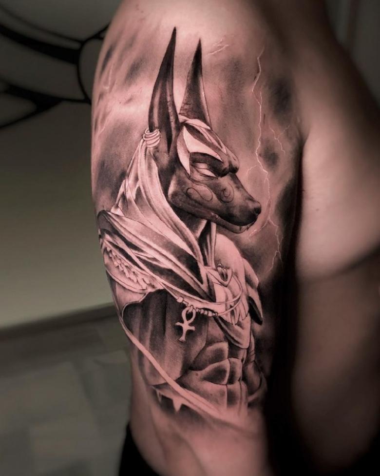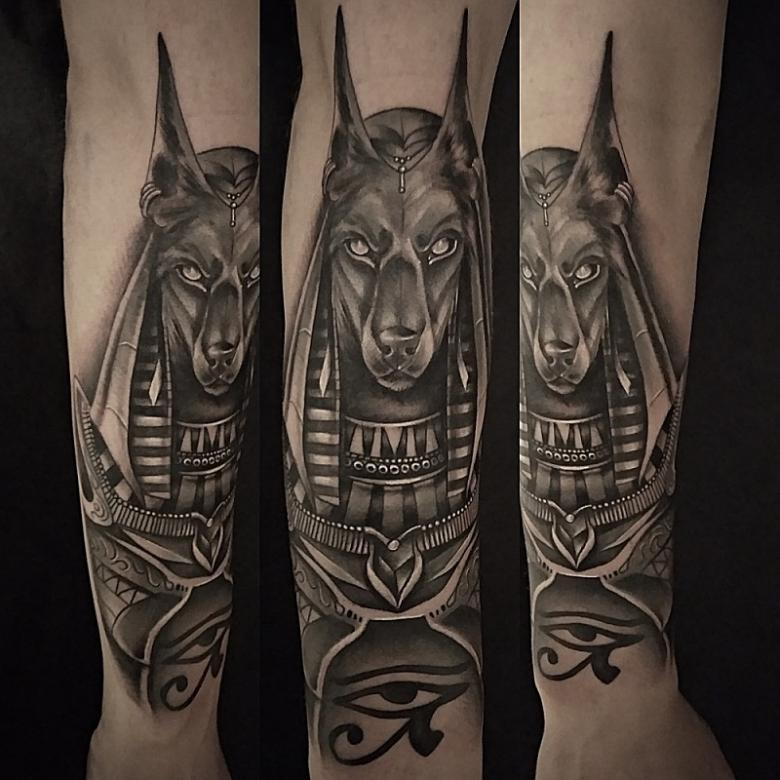 Anubis tetoválás - jelentés, elhelyezkedés (kéz, kar, alkar, kar, kar, láb), érdekes minták és fotók