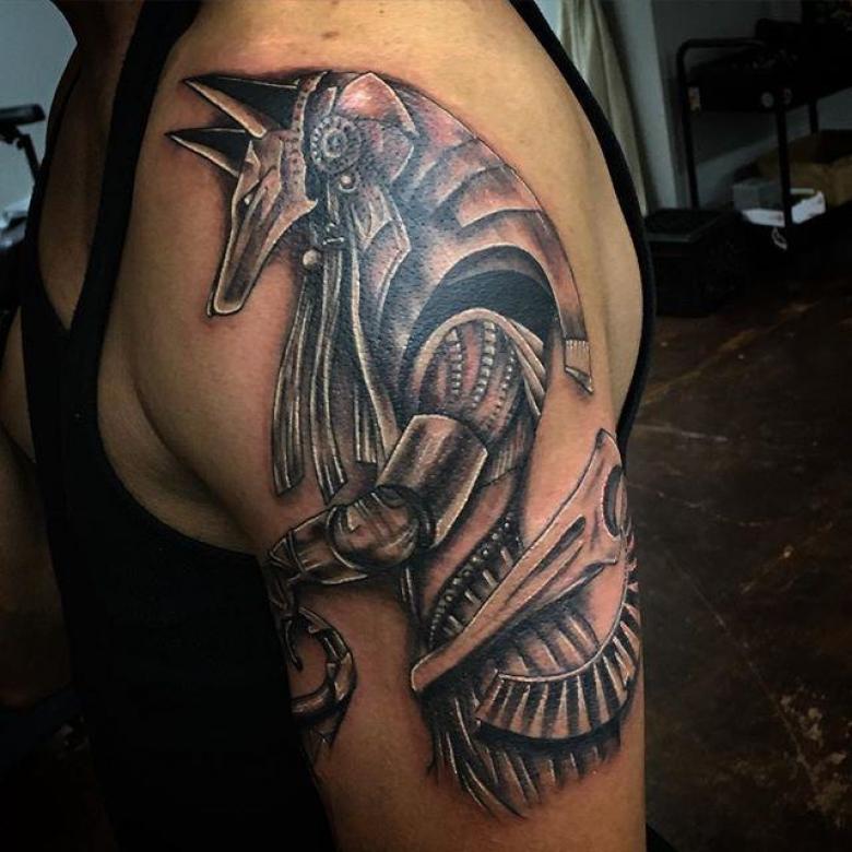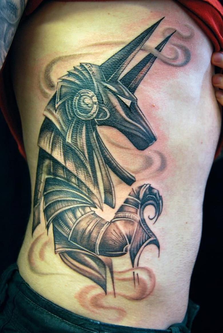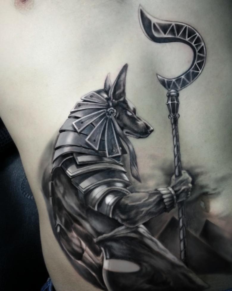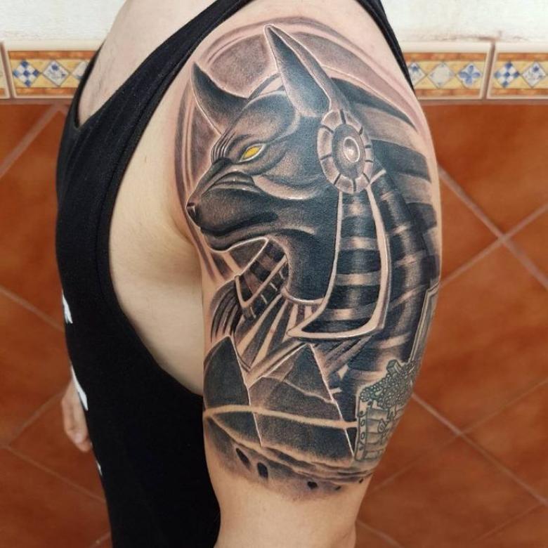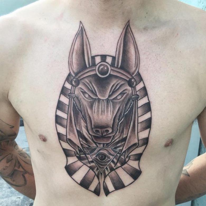Mindenesetre egy látványos Anubisz-kép jól mutat a viselője testén, függetlenül annak nemétől. És a férfi vagy nő testén ábrázolt szimbólum magyarázata sem különbözik túlságosan.