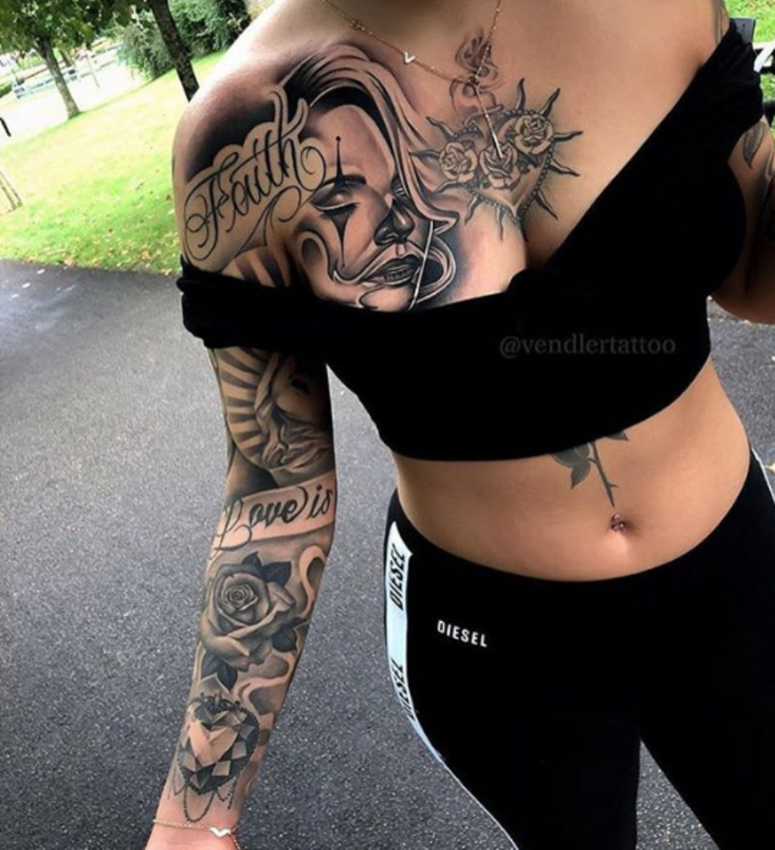 Le sexe faible préfère marquer les tatouages dans les zones proéminentes de la peau. Des images miniatures sont utilisées sur les poignets, les chevilles, le cou et la clavicule. De minuscules symboles sont placés sur les phalanges des doigts. Les images à grande échelle sont souvent réalisées sur les mains et les pieds. Les filles se dessinent moins souvent le dos et le ventre que les hommes.