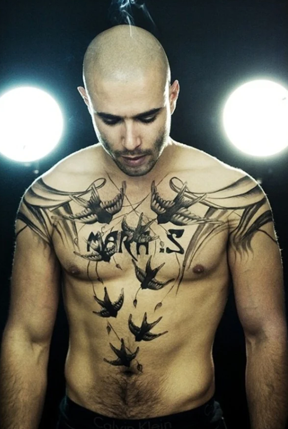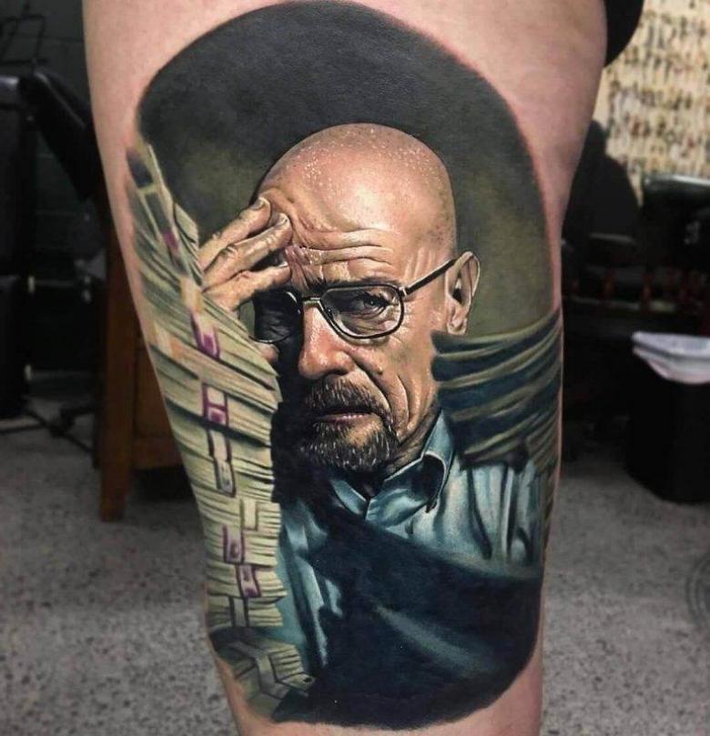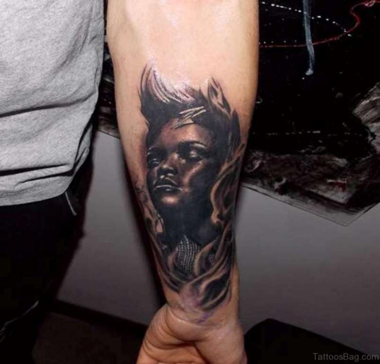 - Vous pouvez également rencontrer des tatouages intéressants avec des images de personnes réelles ou imaginaires. Parfois, les images sont complétées par des inscriptions.