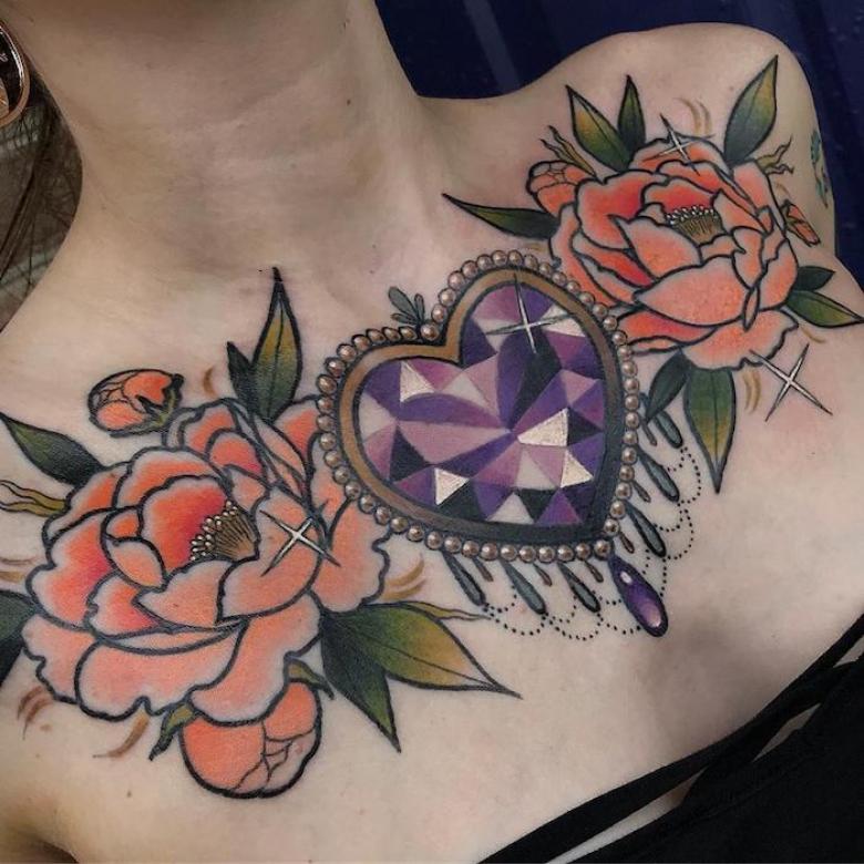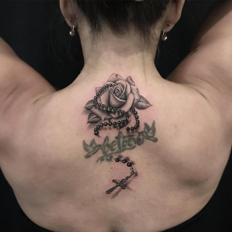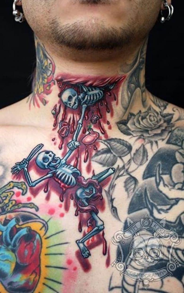 Les dessins plus petits, les inscriptions sont très jolis sur le cou et la clavicule.