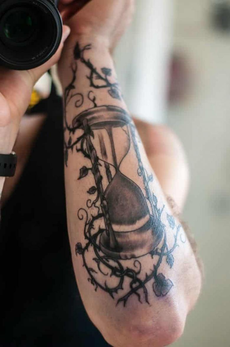 Les roses sont populaires dans l'art corporel. Une manche de tatouage de bouquet est magnifique. Le style aquarelle donne une image si réaliste que le bouquet semble réel.