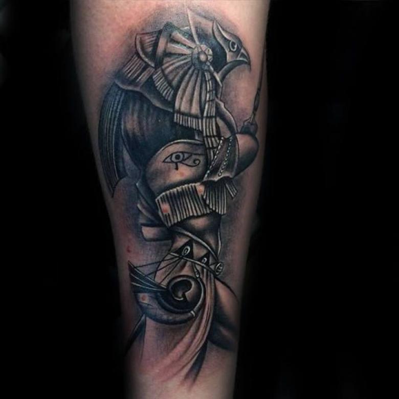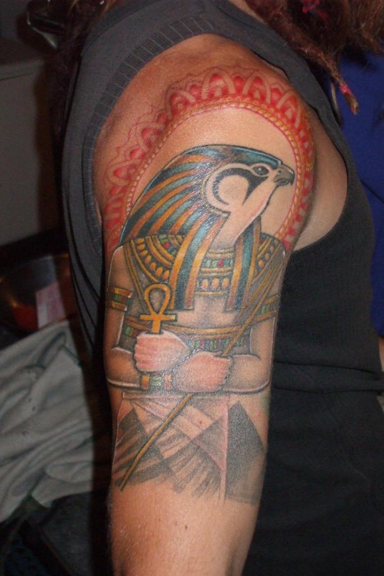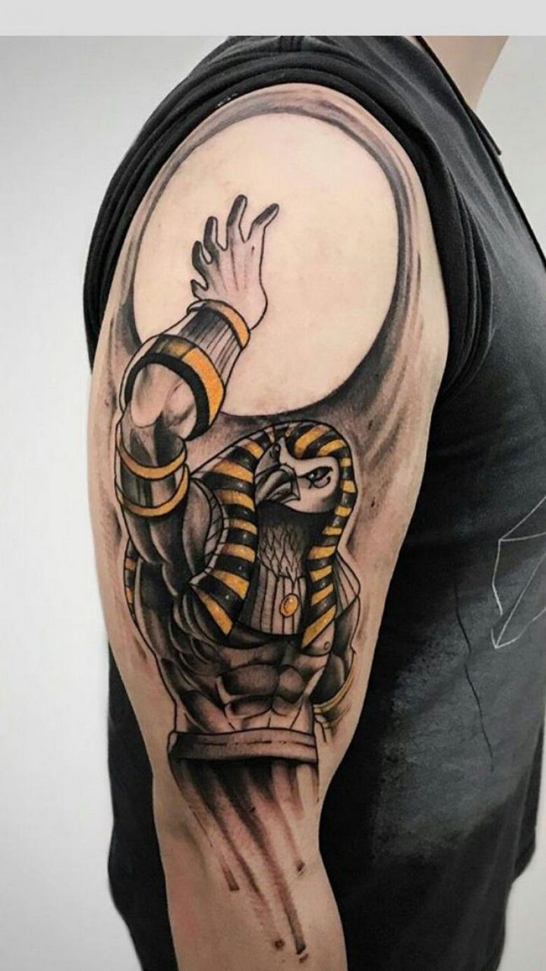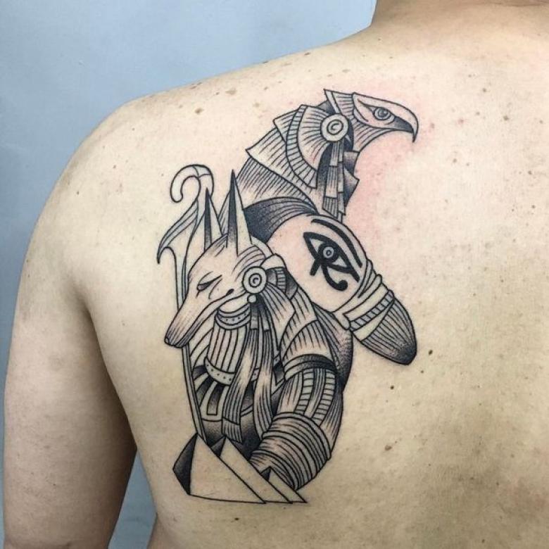 Per i devoti della mitologia egizia, è una buona idea tatuarsi il dio Ra per il suo patrocinio. Un tale tatuaggio illuminerà il modo di vivere del suo proprietario, gli permetterà di non avere pregiudizi sugli eventi, di distinguere le bugie dalla verità, e lo proteggerà dal cacciarsi nei guai. Un'immagine indossata fungerà da talismano, aiuterà chi la indossa a realizzare le sue idee e lo proteggerà dalle influenze aliene.