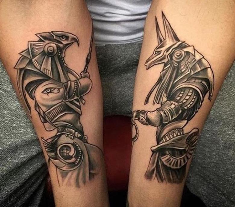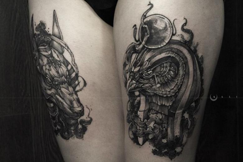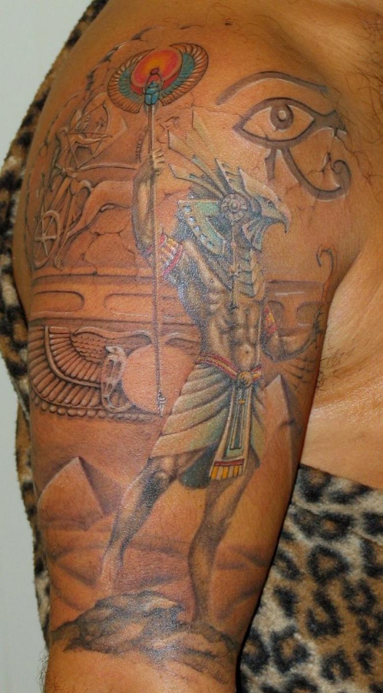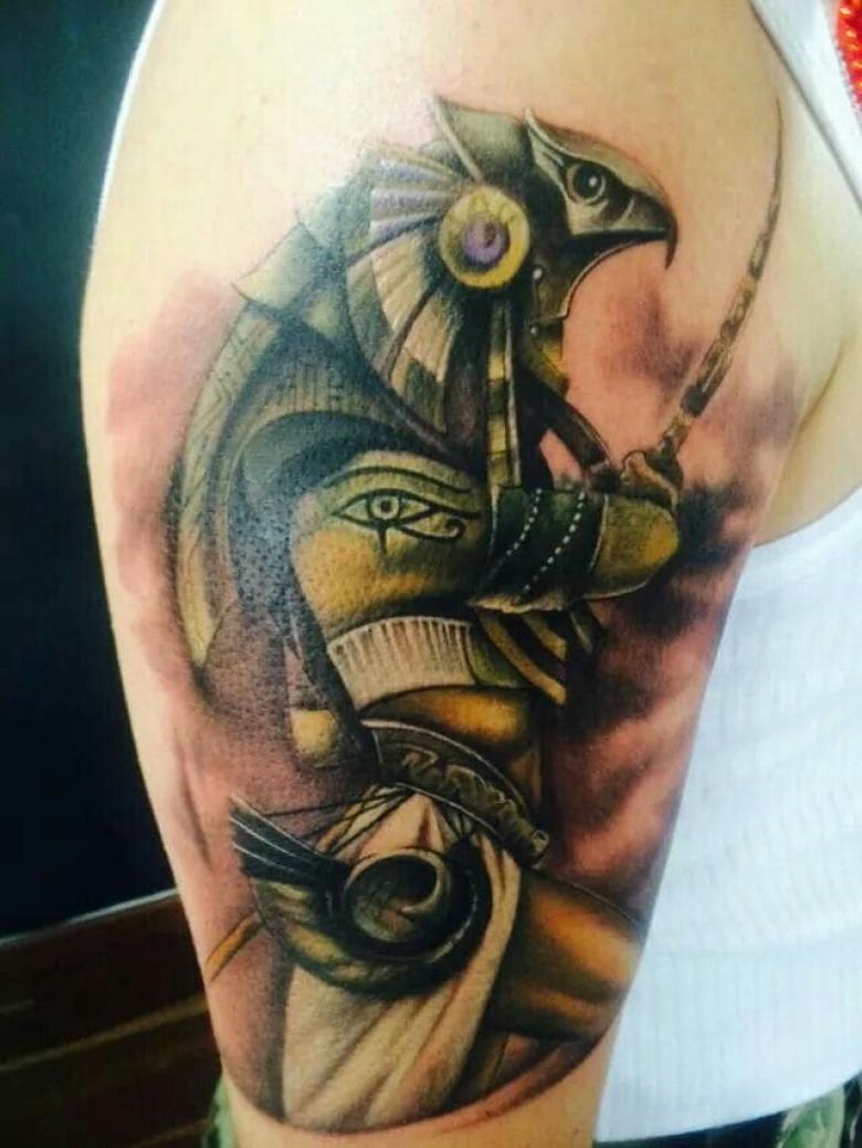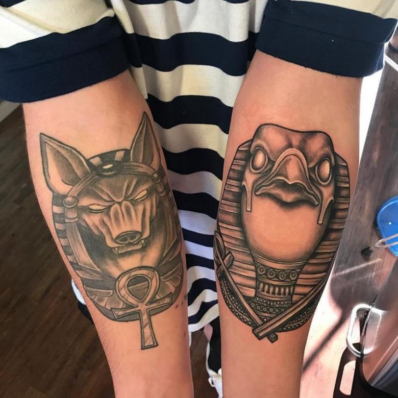 Per i devoti della mitologia egizia, è una buona idea tatuarsi il dio Ra per il suo patrocinio. Un tale tatuaggio illuminerà il modo di vivere del suo proprietario, gli permetterà di non avere pregiudizi sugli eventi, di distinguere le bugie dalla verità, e lo proteggerà dal cacciarsi nei guai. Un'immagine indossata fungerà da talismano, aiuterà chi la indossa a realizzare le sue idee e lo proteggerà dalle influenze aliene.