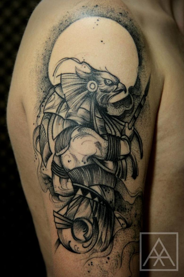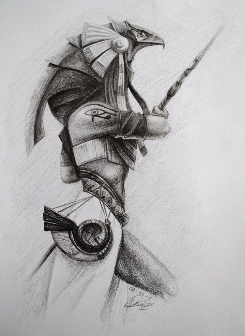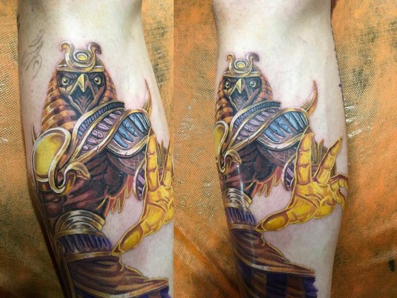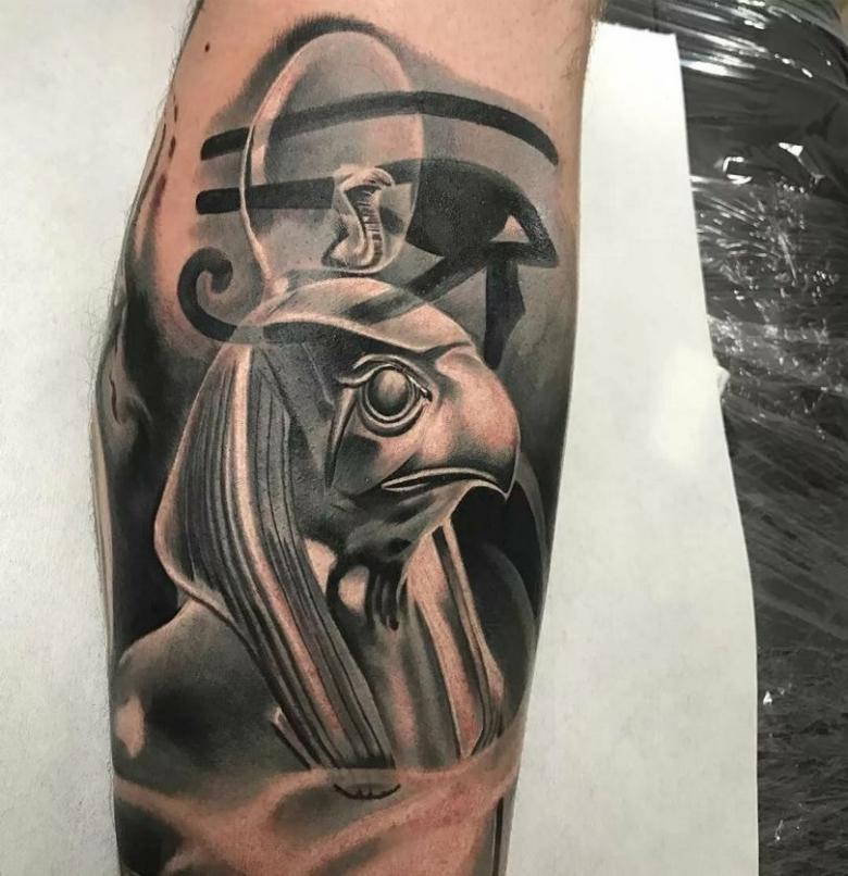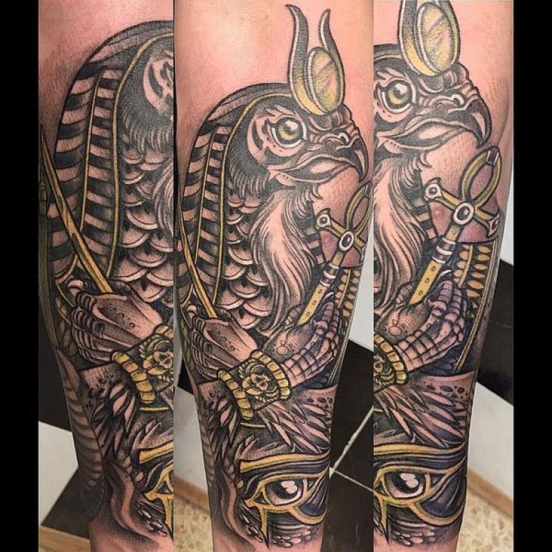 Lo stile più comune di rappresentazione artistica della divinità è in forma di falco. Il significato qui è che questo uccello vola molto in alto, quasi al sole stesso.Il simbolismo di un tale tatuaggio nella purificazione spirituale e la protezione energetica, grazie alla quale il portatore del tatuaggio non è esposto a influenze negative e in tutte le circostanze mantiene l'equilibrio mentale. Lo sguardo del falco indica la capacità di tenere tutto sotto stretta osservazione e controllo, che non permetterà ai nemici di influenzare lo sviluppo della situazione.