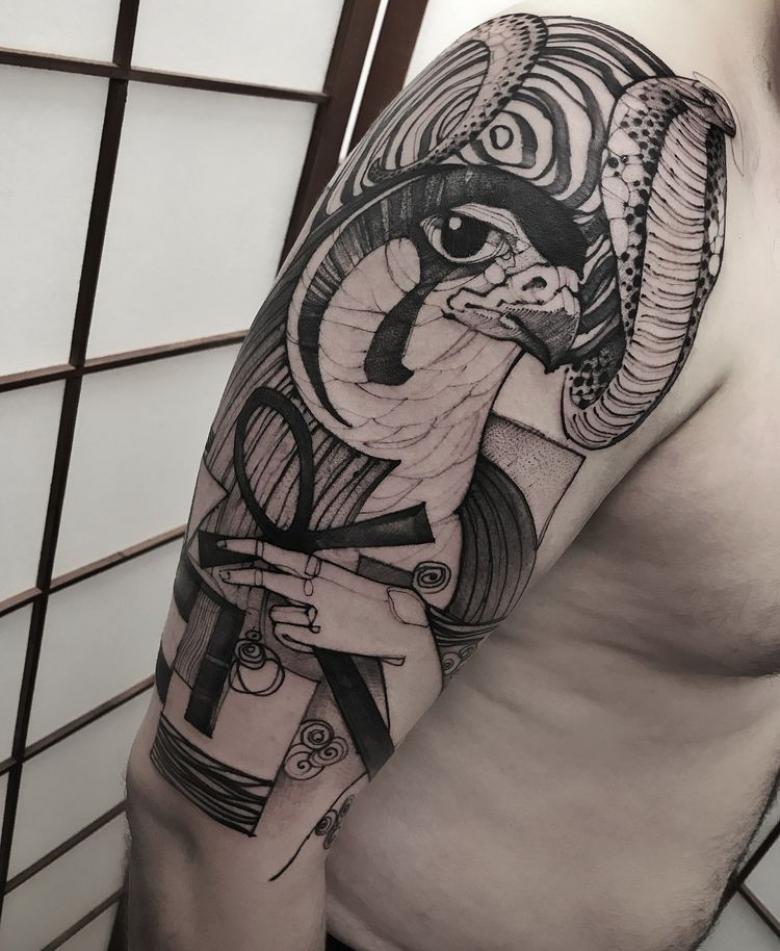Tatuaggio del dio Ra - significati per ragazze e uomini, schizzi di opzioni, foto interessanti