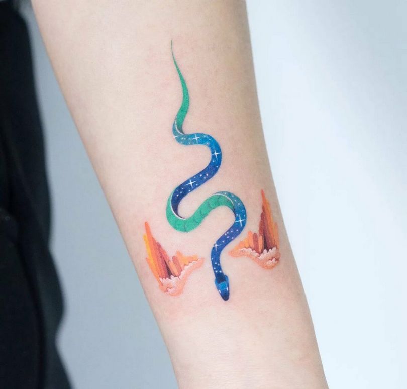 Il tatuaggio è oggi un attributo giovanile essenziale. L'aspetto del serpente è scelto abbastanza spesso, nonostante il fatto che il cristianesimo considerava questa creatura come un'incarnazione del diavolo, che ha spinto Eva alla caduta nel peccato. Tuttavia, qualsiasi atteggiamento umano nei confronti del rettile mantiene invariabilmente il rispetto con sincera riverenza e lode, aiutato dalla sua velocità, leggiadria combinata con l'inimitabile estro.