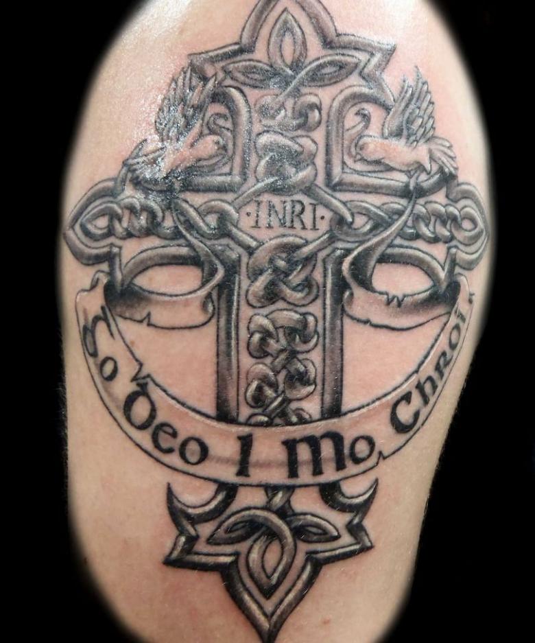 宗教家は、信仰は人の心の中に生きており、証明は必要ないと考えています。いずれにせよ、ケルト十字のタトゥーの最も一般的な役割は、他のタトゥーと同様に、あらゆる欠陥や小さな傷跡を隠すことである。