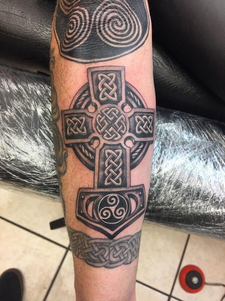 ケルト十字のタトゥー - 完全な説明、アプリケーションの場所(腕、手首、肩)、興味深いデザインと写真