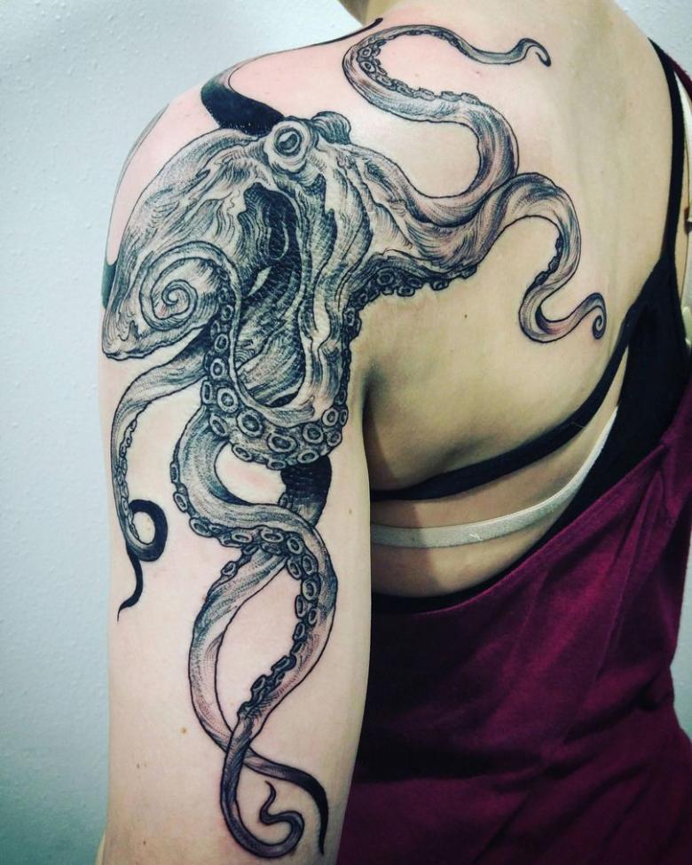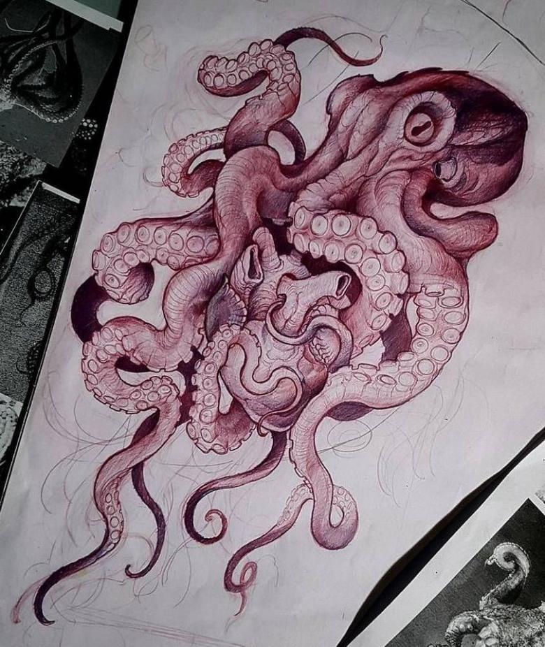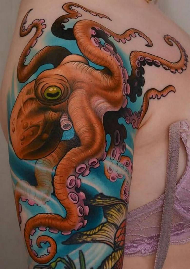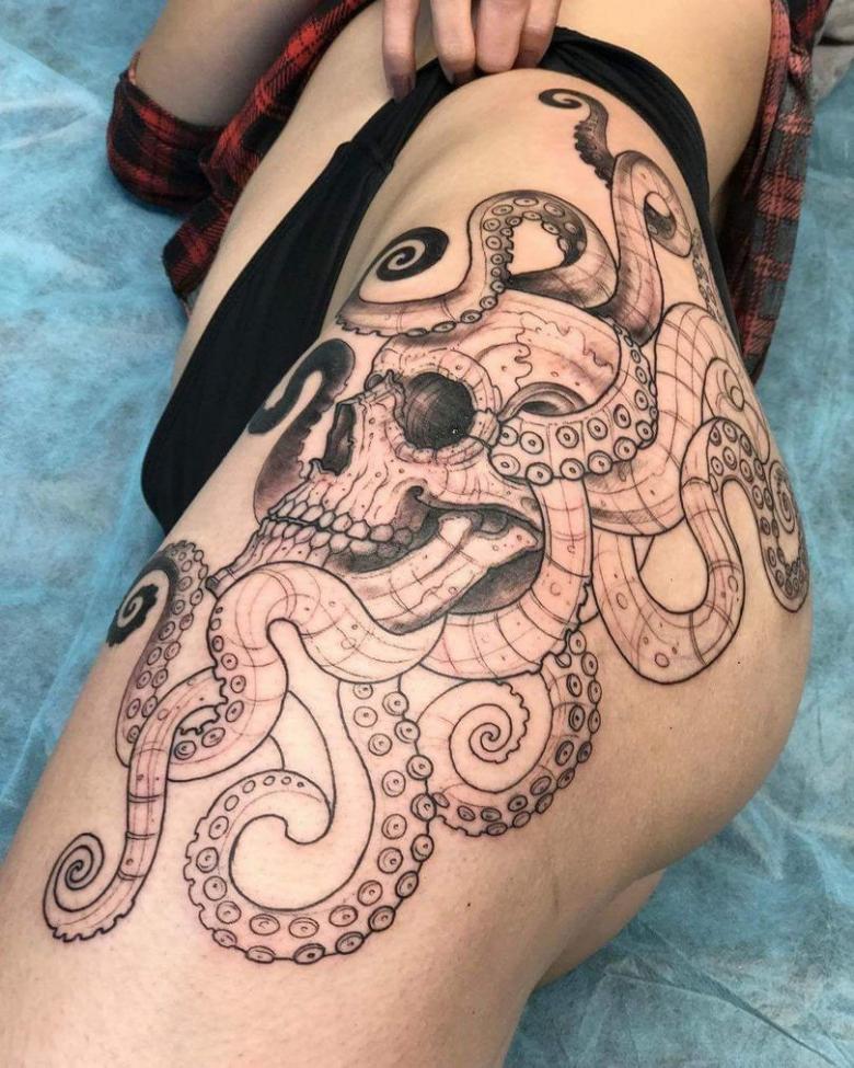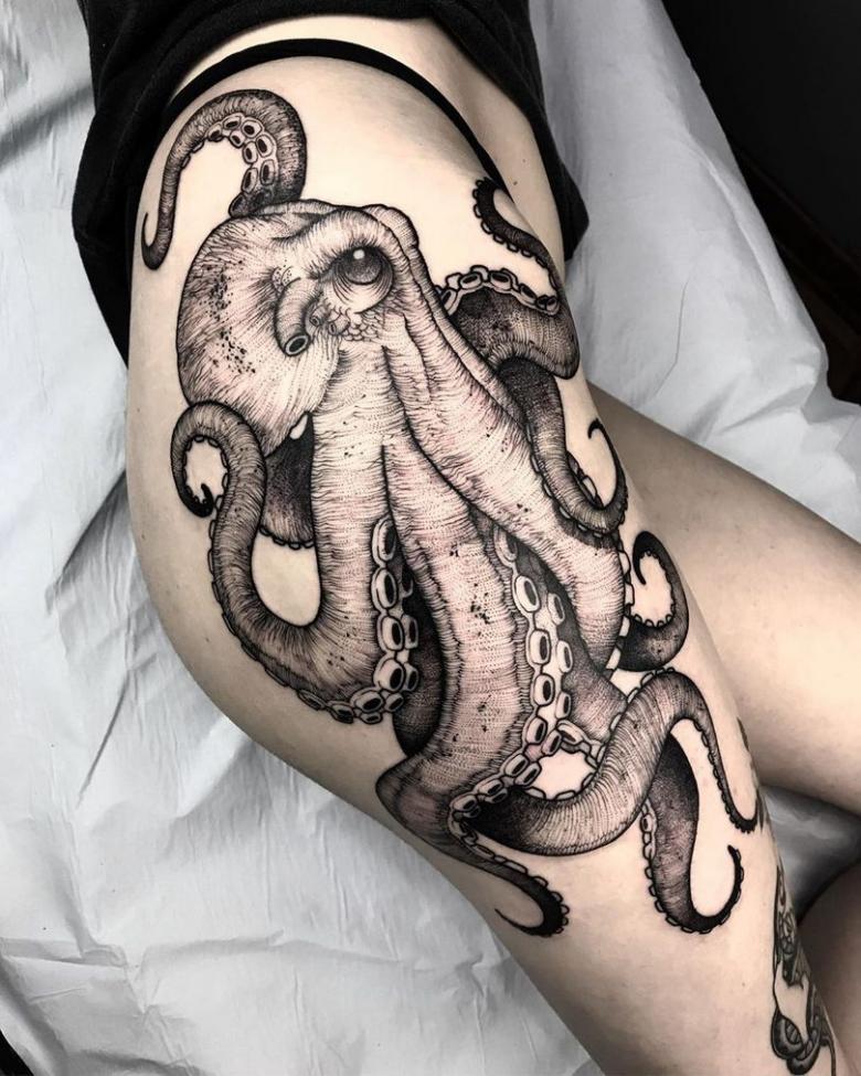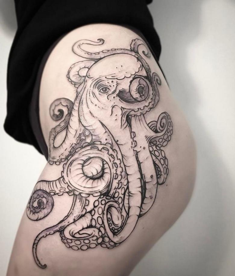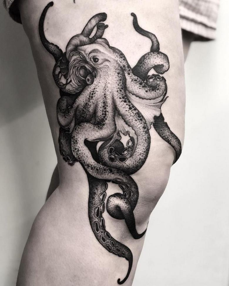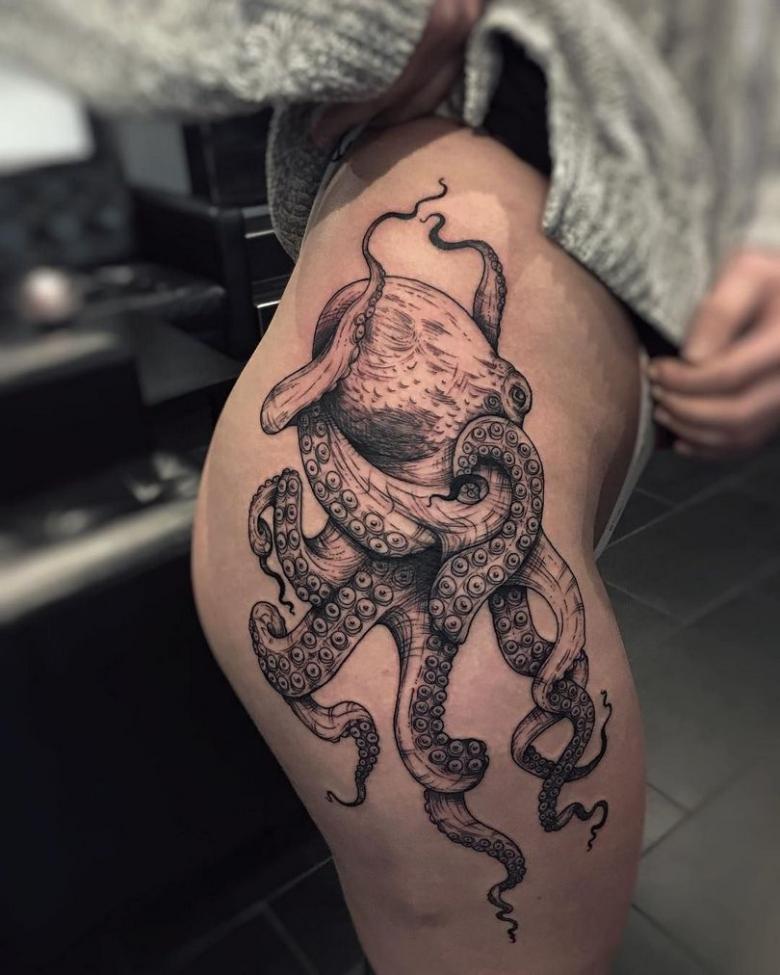 一方、この頭足類の清潔さを忘れてはならない。それは、体に模様をつけることによっても示される。また、男性とは異なり、女子のタコデザインは小さいものが多く、体のほとんどの部分(親密な部分まで含む)に配置することができ、それほど厳密にはリアルではありません。
