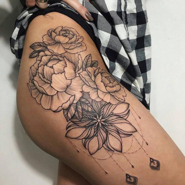 Souvent, les hommes et les femmes appliquent des tatouages sur des zones telles que le pubis, les fesses, etc. La zone est très douloureuse, en termes de tatouage. Certaines images empaillées ont un caractère humoristique, quelqu'un essaie de décorer la zone avec des fleurs. Dans tous les cas, le tatouage est de nature personnelle.