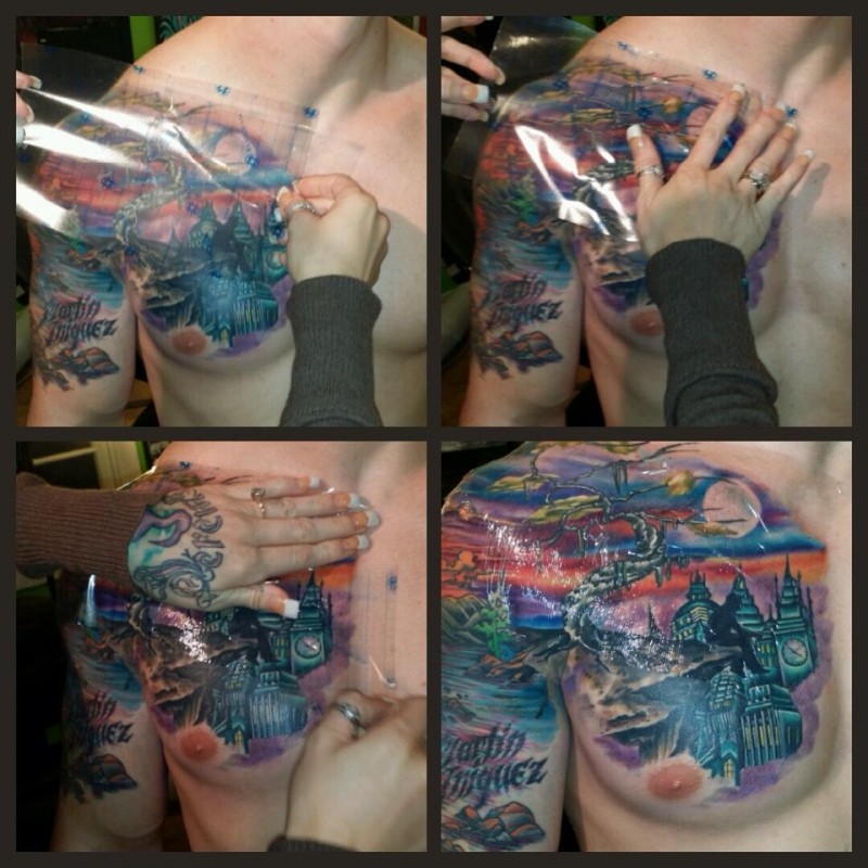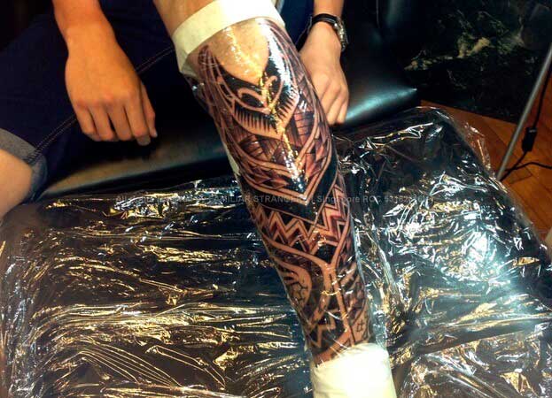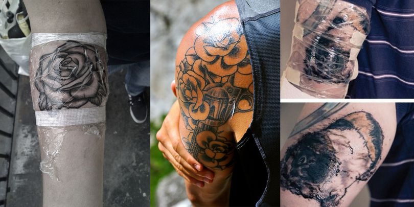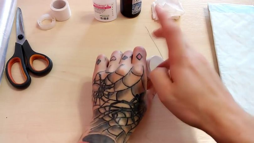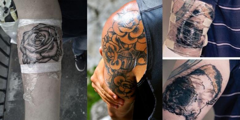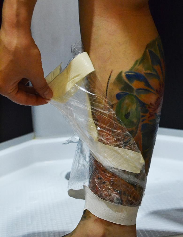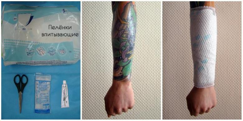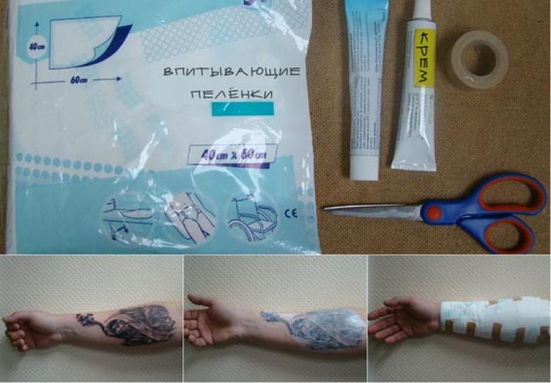 Une fois que le maître a fini de dessiner, il colle un film spécial (parfois les maîtres utilisent des bandages ou des couches en tissu), qui aura une fonction de protection. Cette méthode minimise les effets négatifs de l'environnement et préserve la peau blessée de la pénétration de bactéries. Déjà à la maison, le client doit suivre les recommandations suivantes :