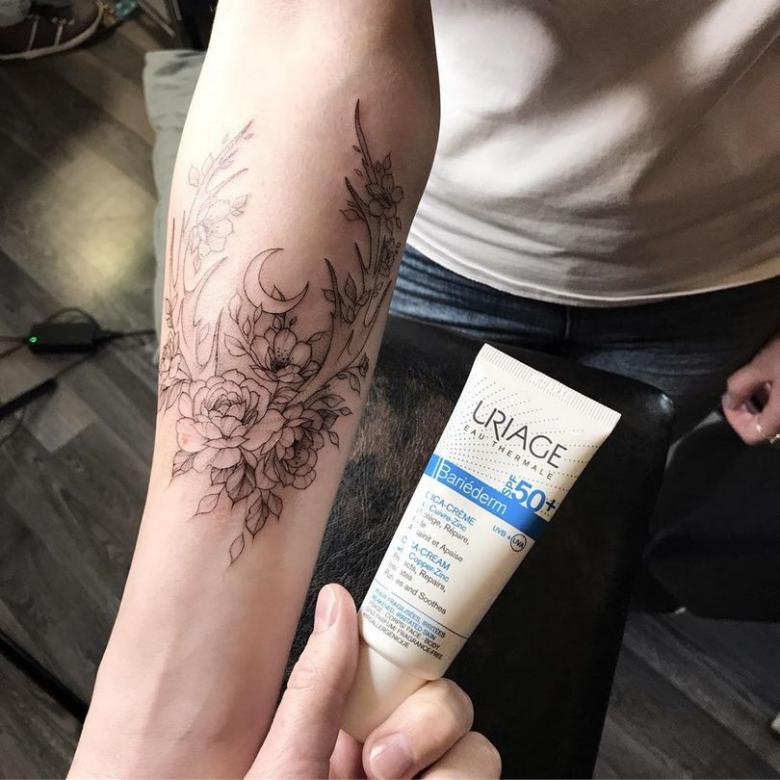 - Gardez les tatouages à l'abri de la lumière directe du soleil et utilisez des écrans solaires avec un FPS d'au moins 50. Sachez que le bronzage est dangereux non seulement pendant la période de cicatrisation, lorsque le tatouage est "frais", mais aussi après la guérison complète de la peau, car l'encre s'estompe simplement au soleil ;
