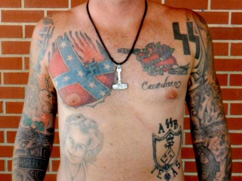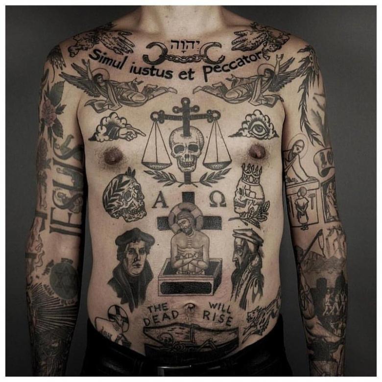 Le fil barbelé et les pointes symbolisent les années passées derrière les barreaux. C'est pourquoi il est fortement déconseillé aux personnes qui n'ont pas été en prison d'utiliser cet art corporel.