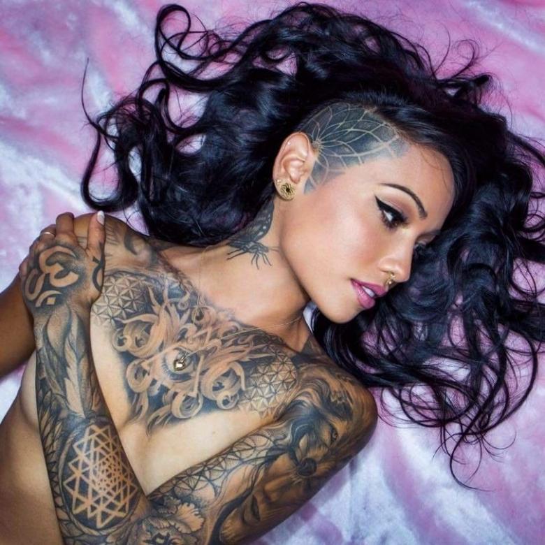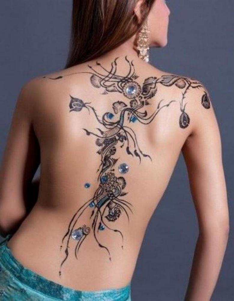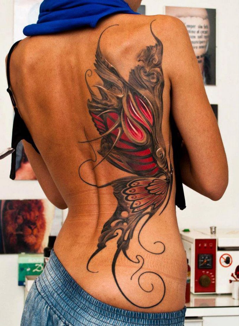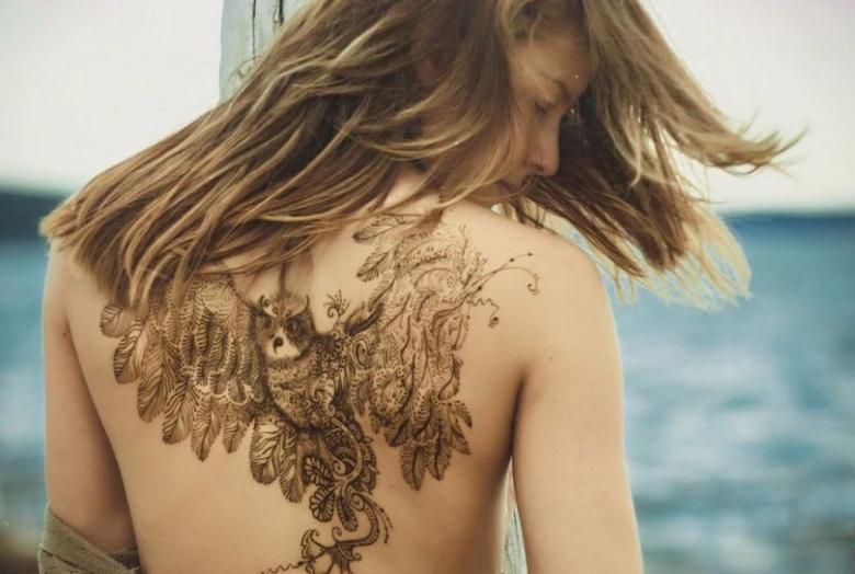 Les images mémorables apparaissent le plus souvent sur cette partie du corps de la femme. Il s'agit d'un champ énorme pour un maître expérimenté. On peut y voir d'énormes capteurs de rêves, des oiseaux de feu, des inscriptions et des ailes.