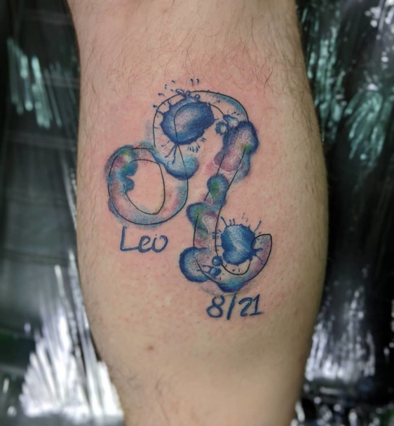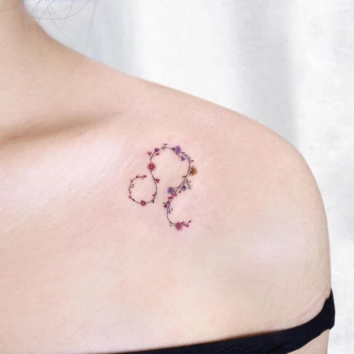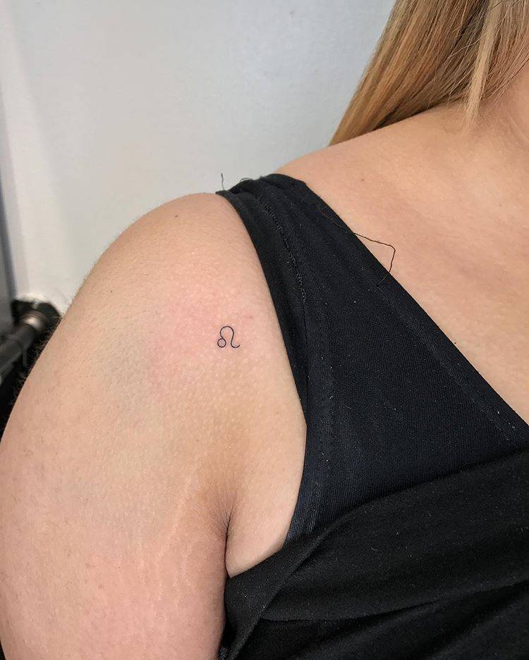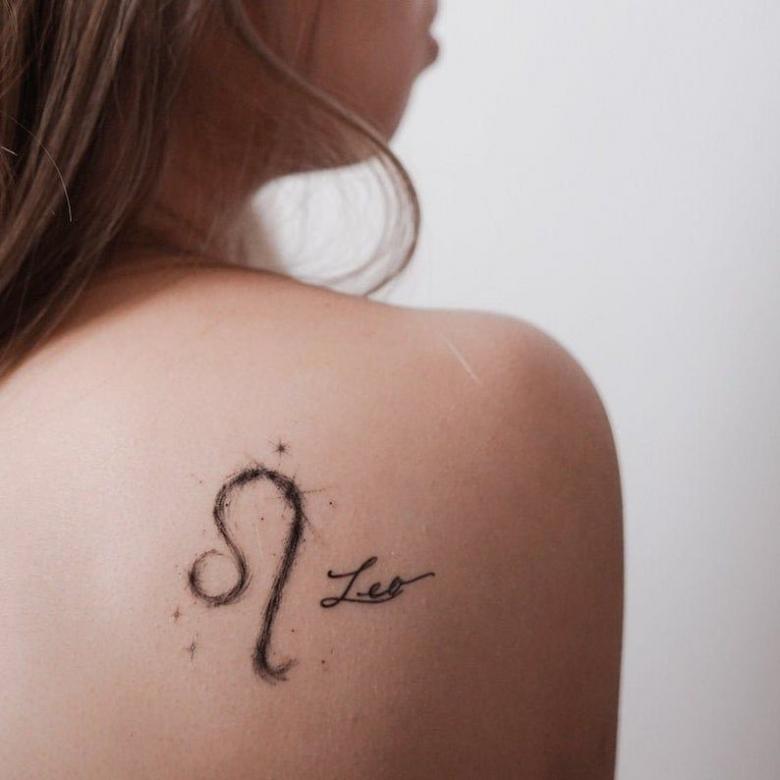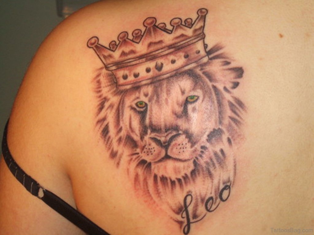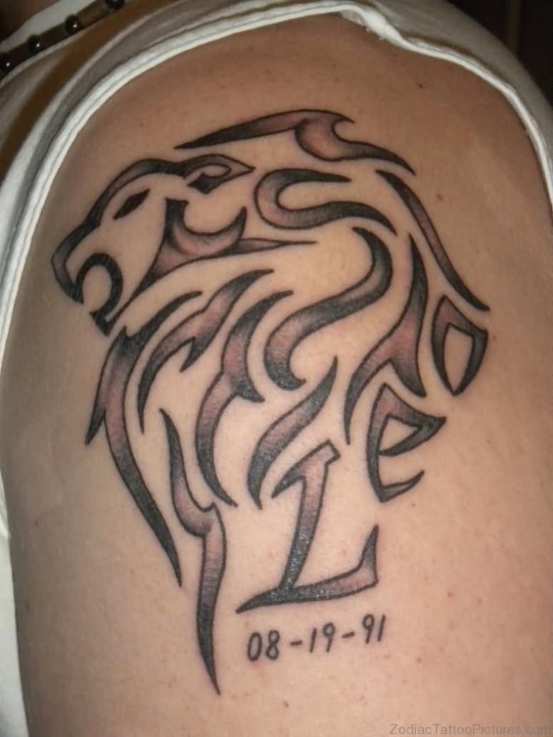Le tatouage du signe du zodiaque lion, représenté sur l'épaule, évoque la force de caractère et le courage. Un homme avec un lion sur l'épaule démontre son indépendance. Il peut s'agir d'un animal agressif à gueule ouverte ou d'un animal calme associé à d'autres animaux.