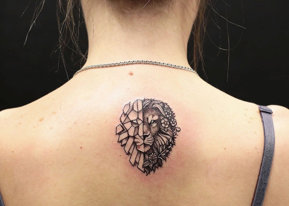 Un lion sur le dos ou les omoplates symbolise le leadership. La personne qui choisit cet arrangement doit avoir le désir de diriger et même de soumettre d'autres personnes. Le tatouage sur le dos est parfois conçu comme une grande échelle, multicolore, avec des éléments supplémentaires.