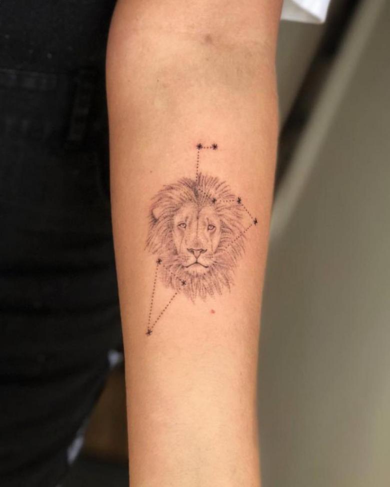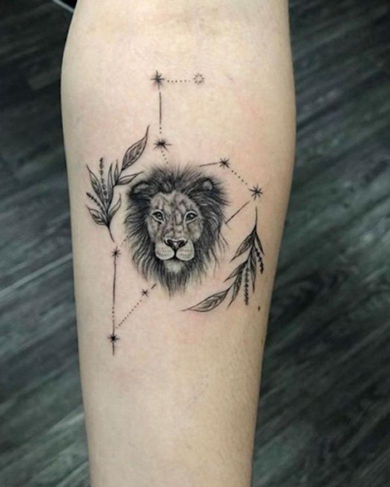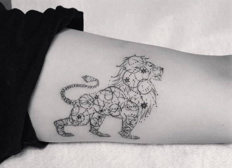 Tatouage du signe du zodiaque un lion (51 photos) : la signification des tatouages pour hommes et femmes, les styles, les emplacements, les motifs.