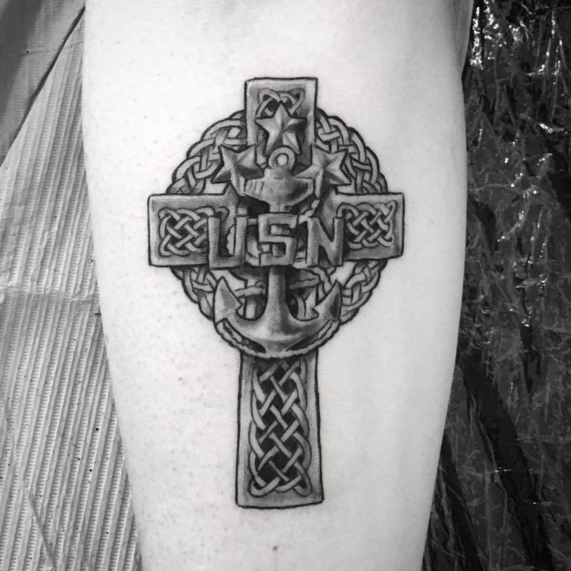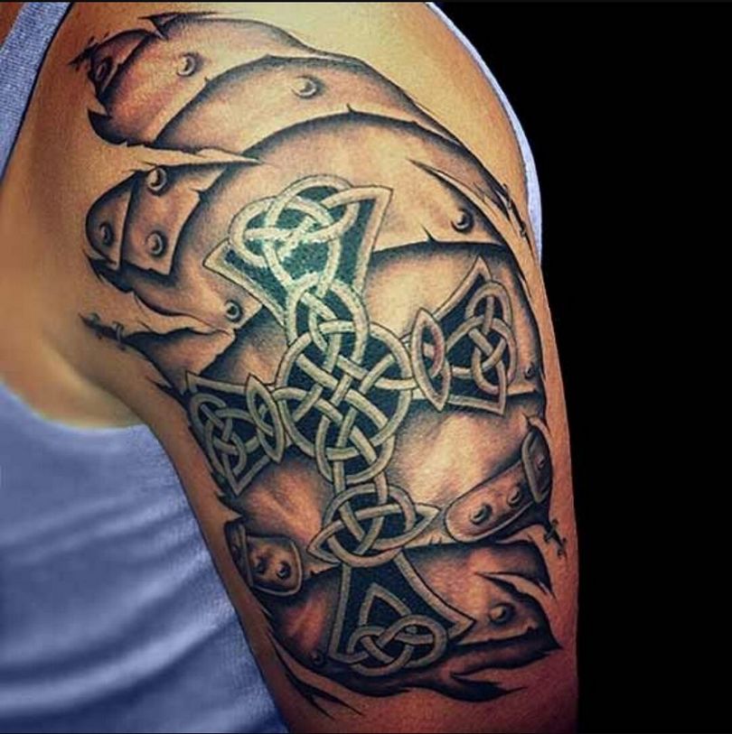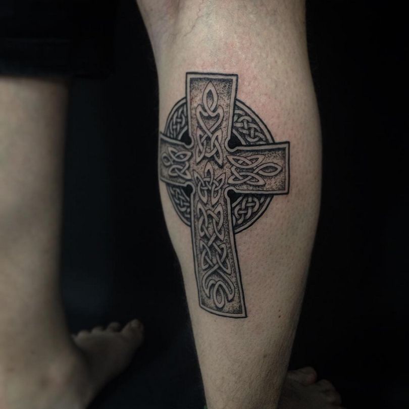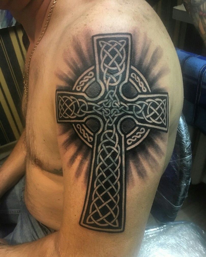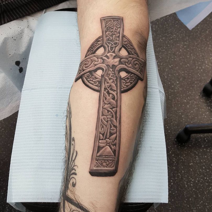 Keltų kryžiaus tatuiruotė - išsamus aprašymas, taikymo vieta (ant rankos, riešo, peties), įdomūs dizainai ir nuotraukos