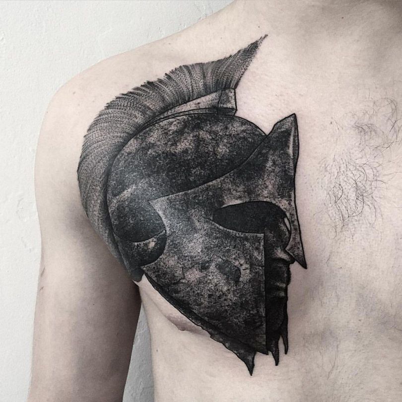 Tetovējums Spartas kaujas ķivere simbolizē spēku un izturību, jo ieroču un aizsardzības komplekts Spartas svēra apmēram 30 kg. Ķiveres tetovējums uzsver cilvēka līdzsvarotību, viņa spēju būt pāri saviem ienaidniekiem un nelabvēļiem.