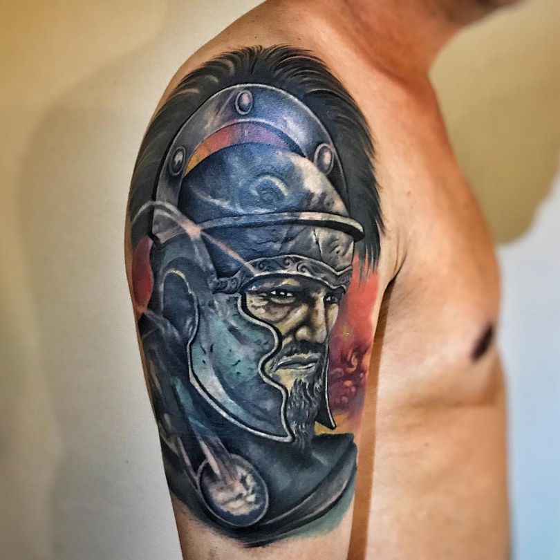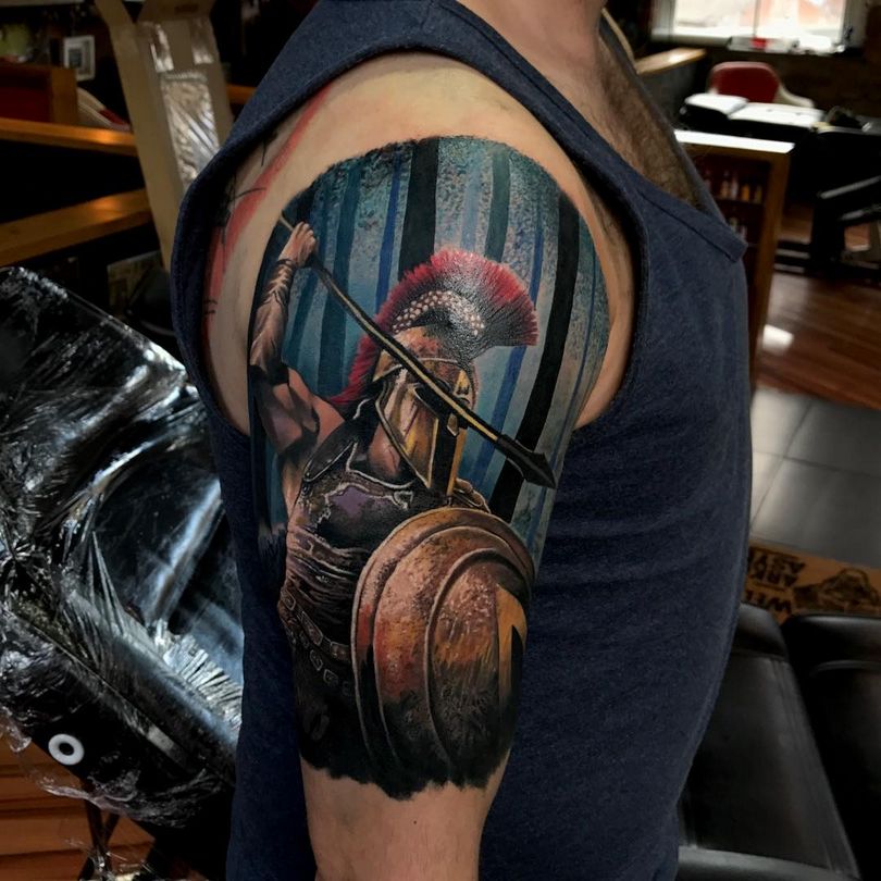 Spartiešu karavīra tetovējums uz krūtīm izskatīsies lieliski. Tetovējums efektīvi akcentēs muskuļu reljefu. Priekšdelms vai teļš ir labs attēlam ar spartieša galvu ķivere, kas tagad ir ļoti populāra. Turklāt tetovējums var noslēpt, piemēram, rētas, bez nepieciešamības doties pie ķirurga.