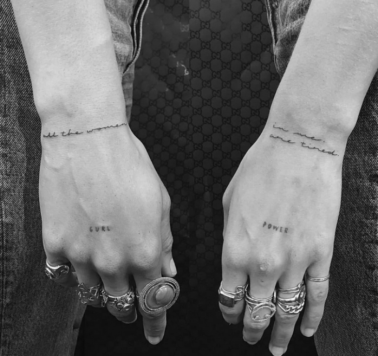 Les petits tatouages au stylo noir pour les couples sont toujours en vogue. Ils représentent l'amour et le respect des partenaires, l'amitié et l'assistance mutuelle des amis, la compréhension mutuelle et le soutien des proches. Tatouages de couple Ils sont rarement imposés par des parents proches - un parent et un enfant. Les tatouages les plus courants sont :