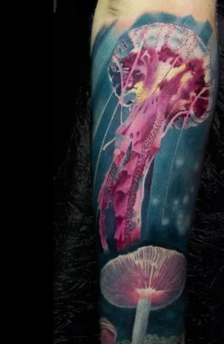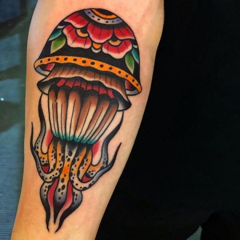 Tatouage de méduse avec un champignon