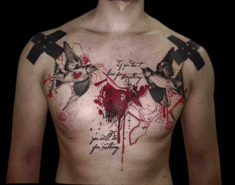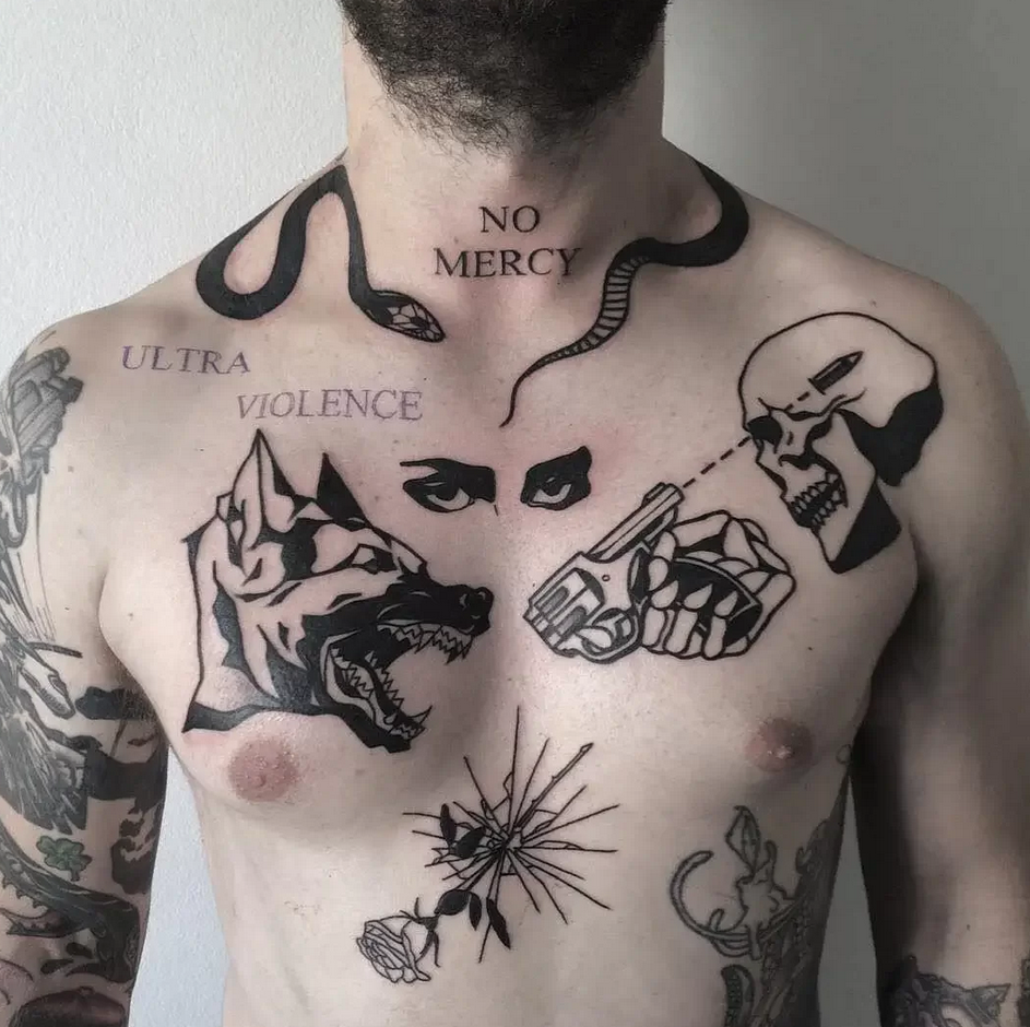 Les tatouages pour jeunes que les hommes aiment appliquer sur les parties exposées du corps afin qu'ils soient plus faciles à montrer. Les images de grande taille (portraits de personnes et d'animaux, scènes de films, etc.) sont placées sur de grandes surfaces : dos, poitrine, bras, cuisses.