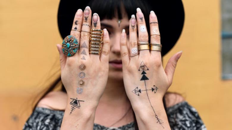 Les filles préfèrent appliquer des croquis miniatures sur le dos ou le cou, auquel cas l'image peut être recouverte de cheveux. Les tatouages de mandalas, de motifs et d'ornements sont populaires sur les mains des jeunes. Les inscriptions font bonne figure sur les pieds, les avant-bras et le long des clavicules. De petites images ornementales sont appliquées sur les poignets sous la forme d'un bracelet.
