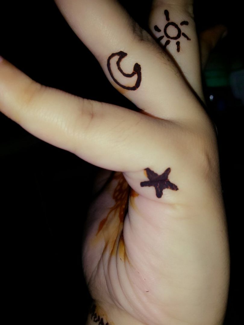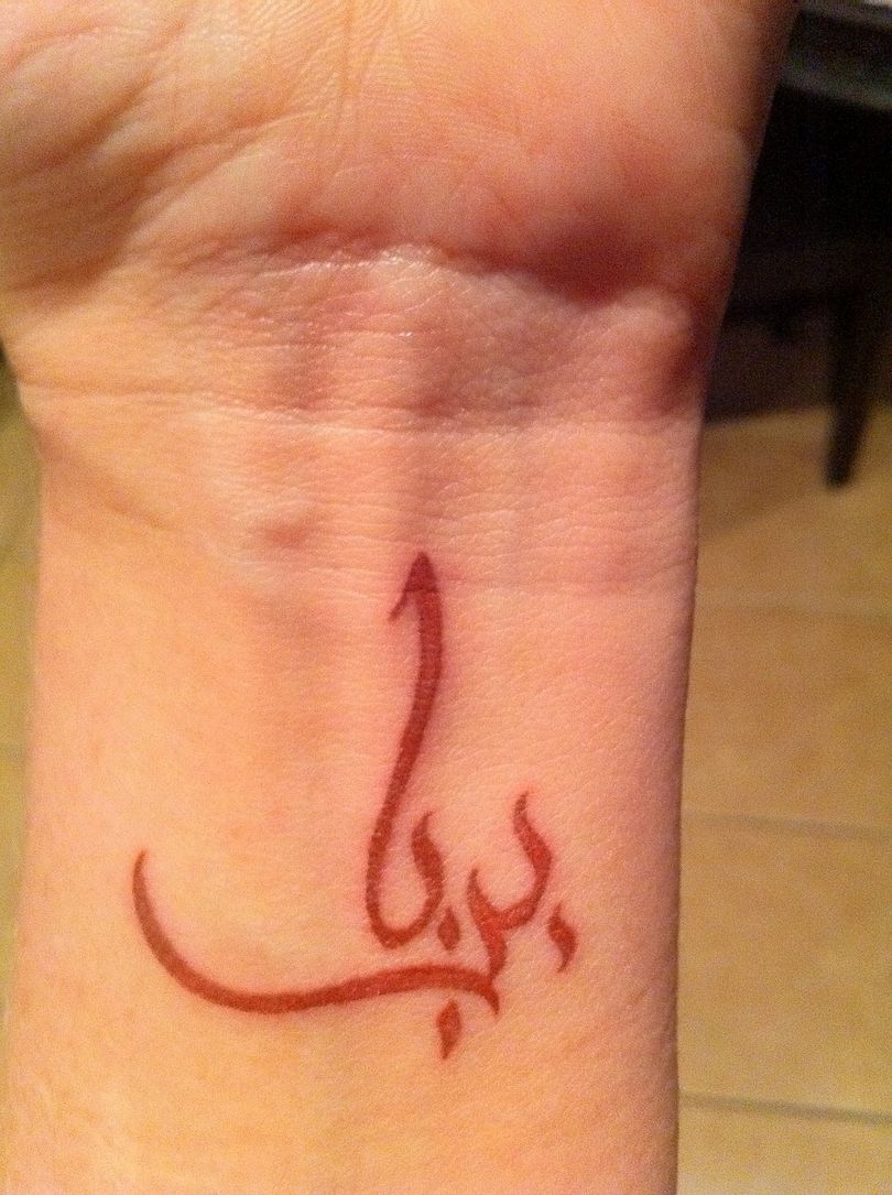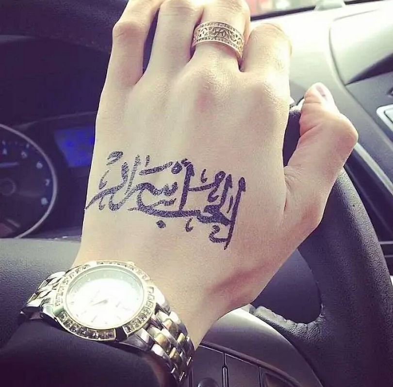 Tatouages temporaires. Le plus souvent, les tatouages temporaires appartiennent au beau sexe. La caractéristique du tatouage est qu'avec le temps, il s'efface. Certaines filles préfèrent encore les dessins au henné car les membres plus âgés de la famille leur interdisent de faire des tatouages.Inscriptions. Toute inscription ou phrase en langue arabe a une signification précise. Par conséquent, un tel tatouage doit être réalisé avec prudence, en apprenant et en comprenant parfaitement le sens de la traduction d'une inscription ou d'une phrase entière.