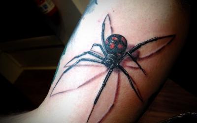 Tatouage d'une araignée - croquis, signification, à quoi il ressemble sur le bras et le cou, l'épaule, la jambe, le kyste, que signifie le tatouage d'une araignée.